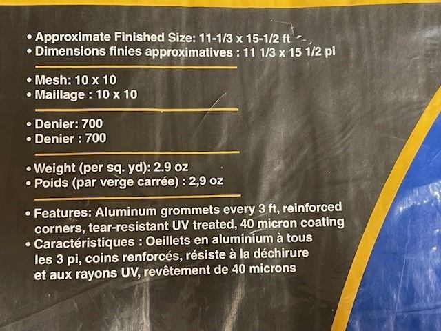 - Aluminum grommets every 3ft around hem