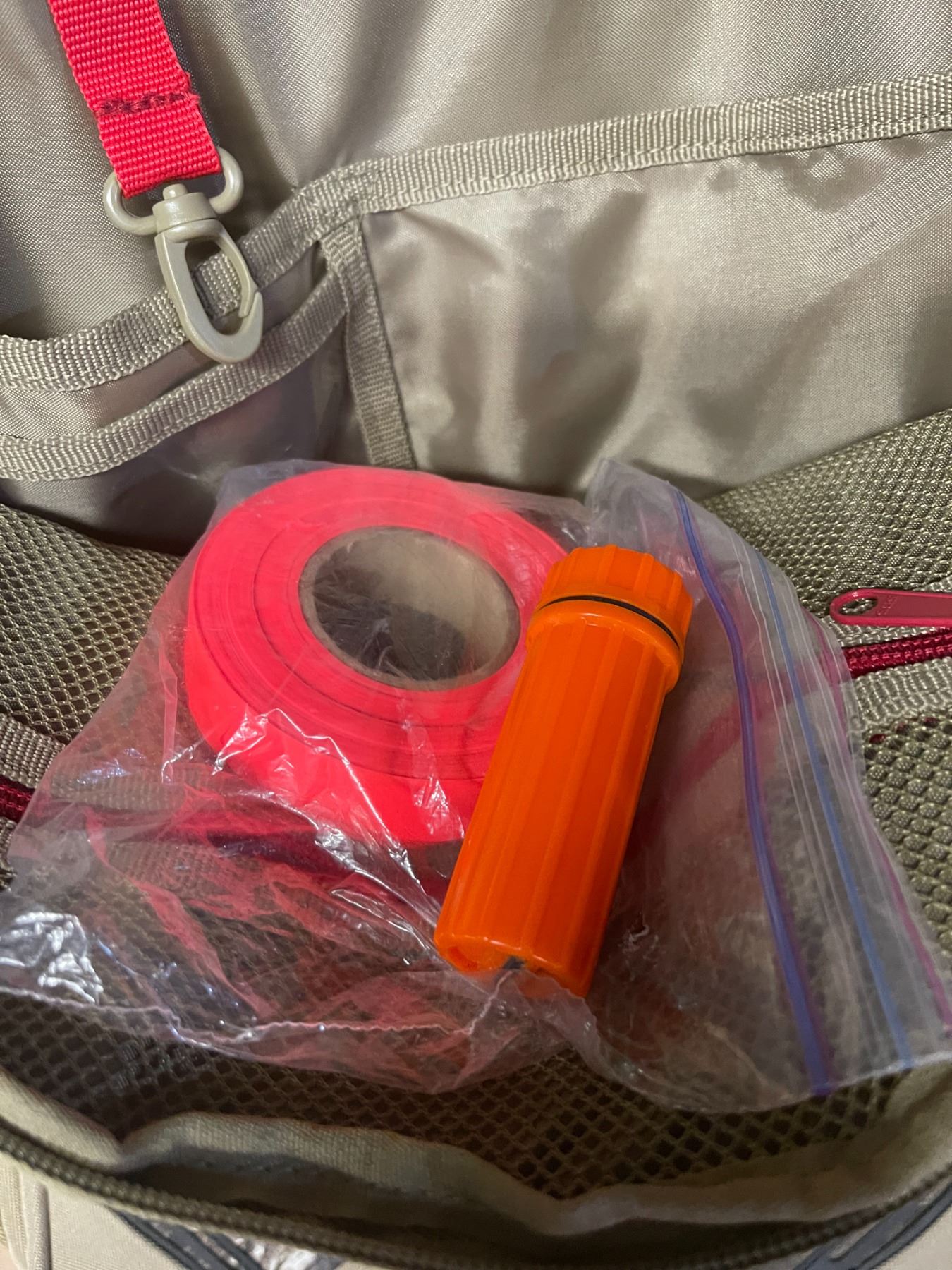 1 roll pink flagging tape and waterproof match container included