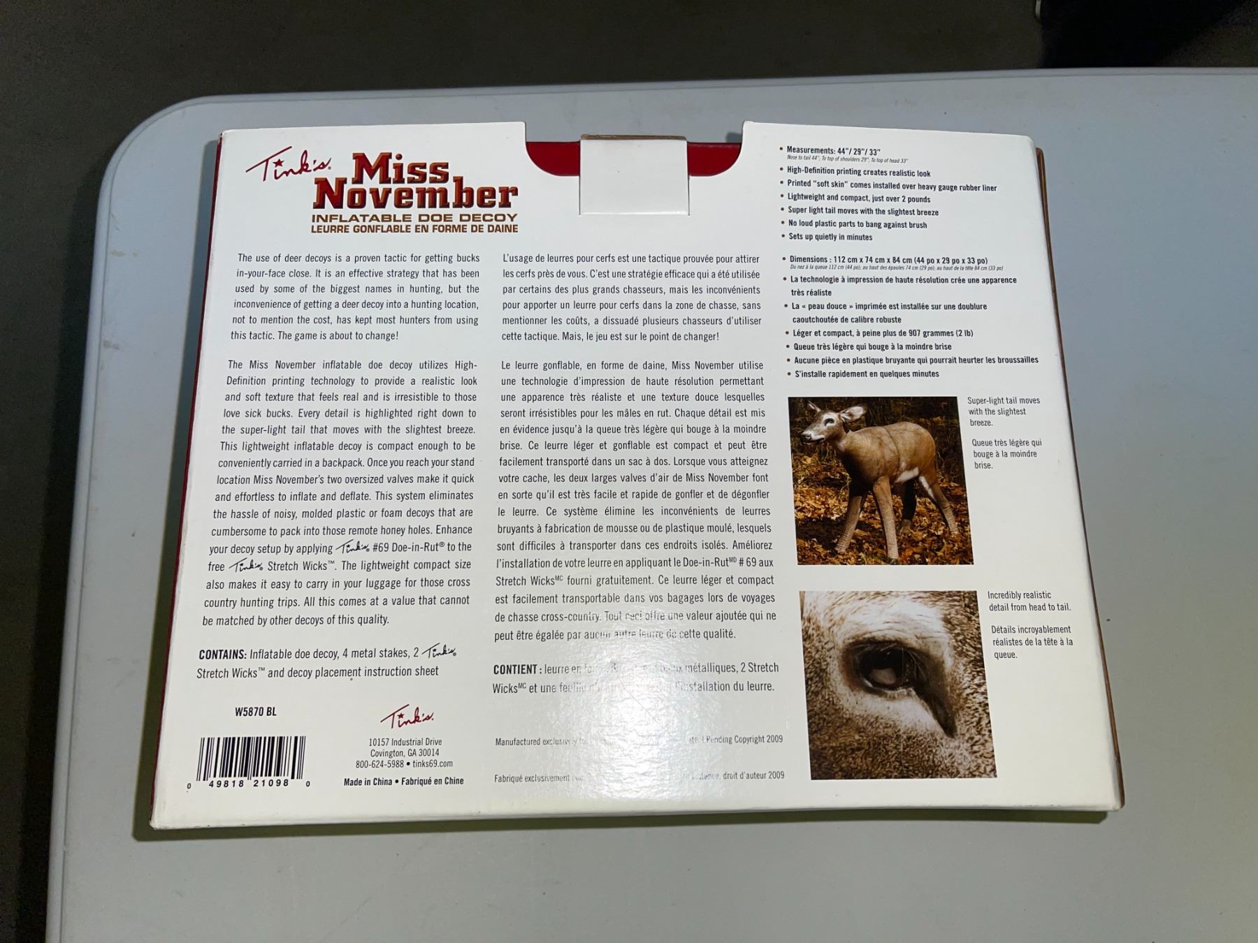 Lot 221 TINK'S Miss November Inflatable Doe Decoy