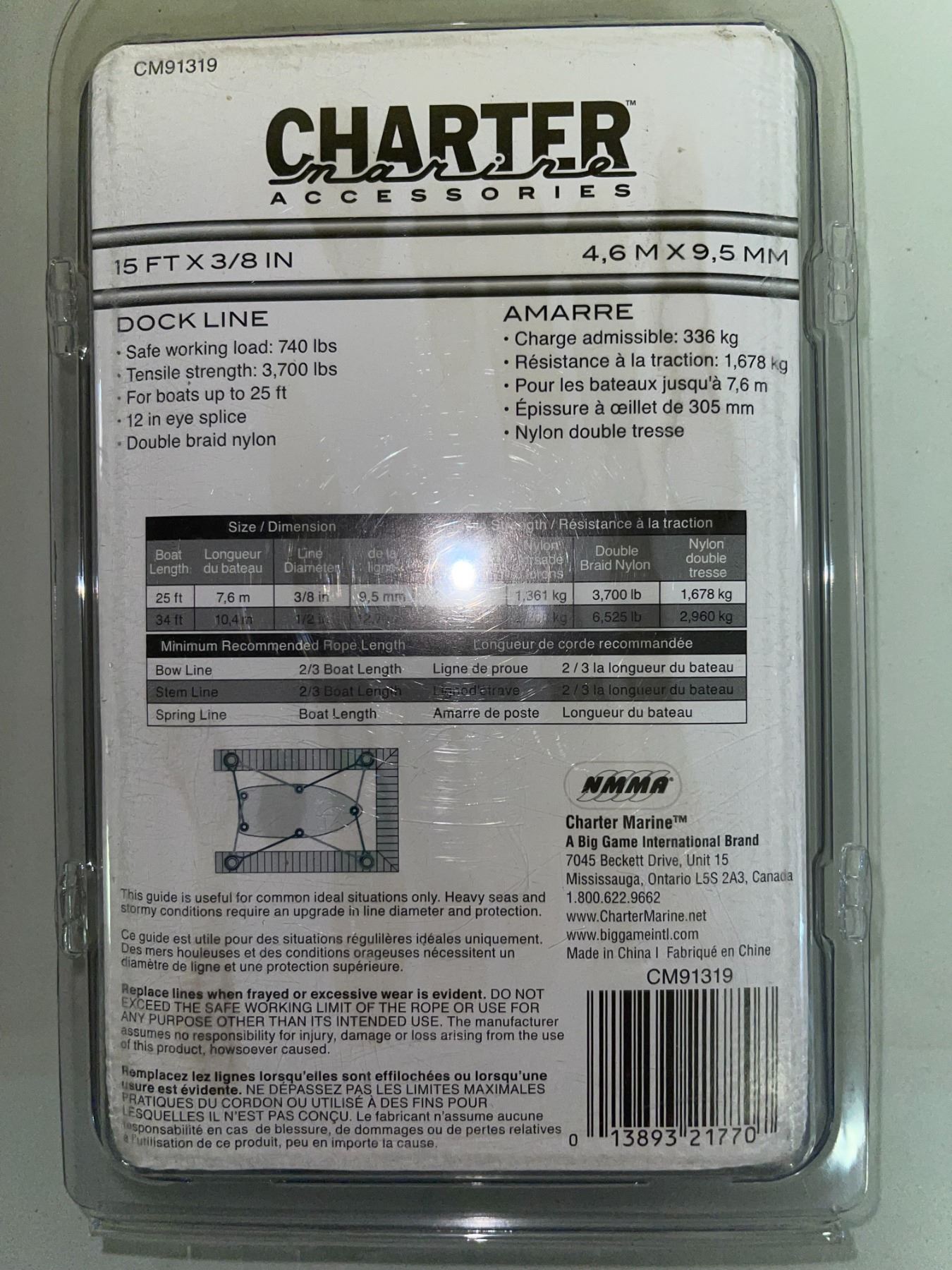 Lot 248 3 CHARTER Marine Accessories 15ft x 3/8in Dock Line