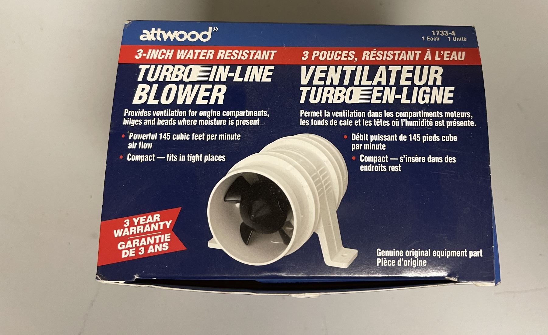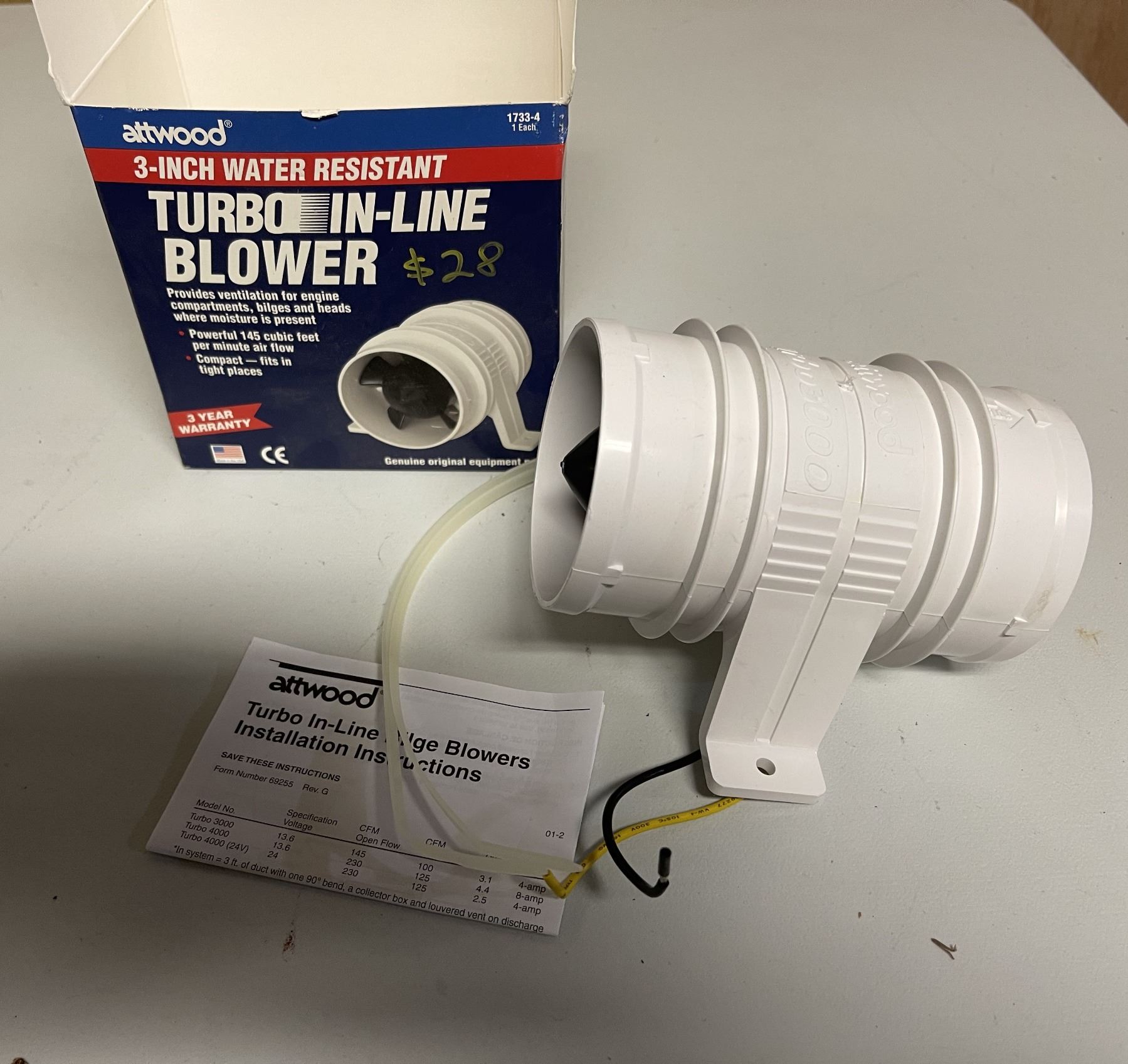 Lot 321 ATTWOOD 3in Water Resistant Turbo In-Line Blower