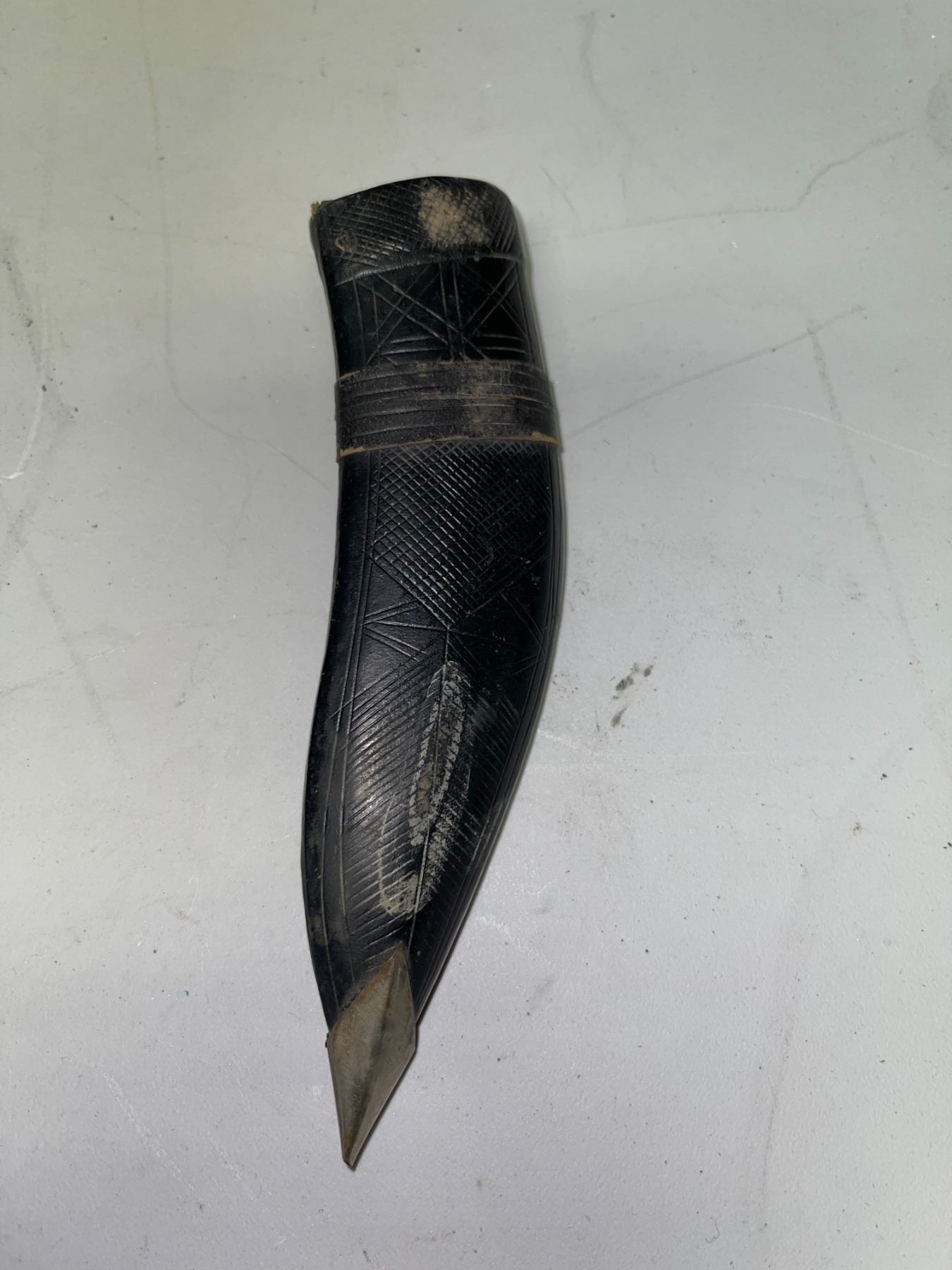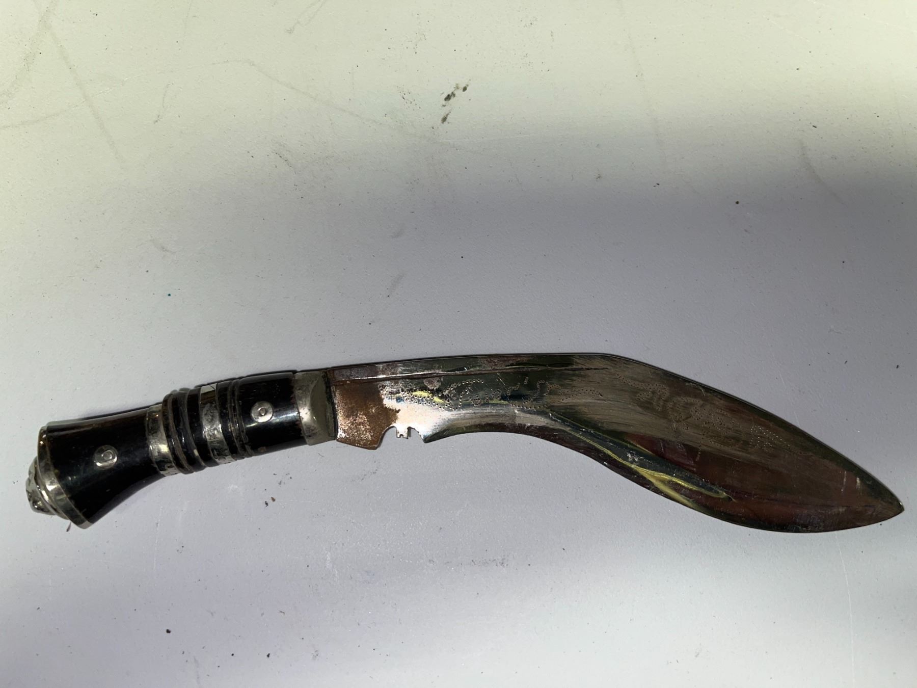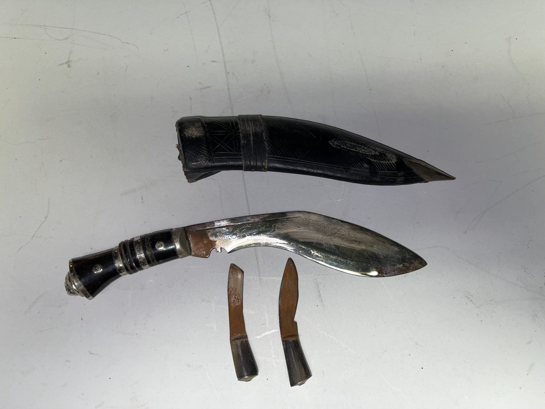 Lot 339 VINTAGE India Gurkha Kukri Fixed Blade Knife with sheath and 2 small knives