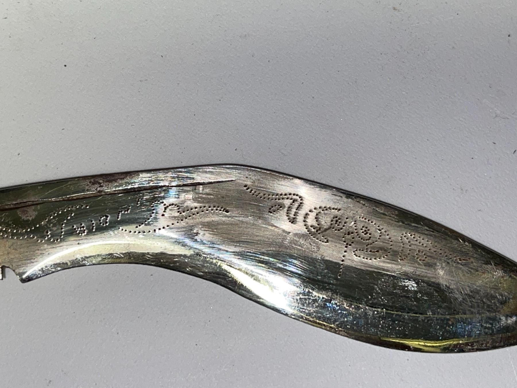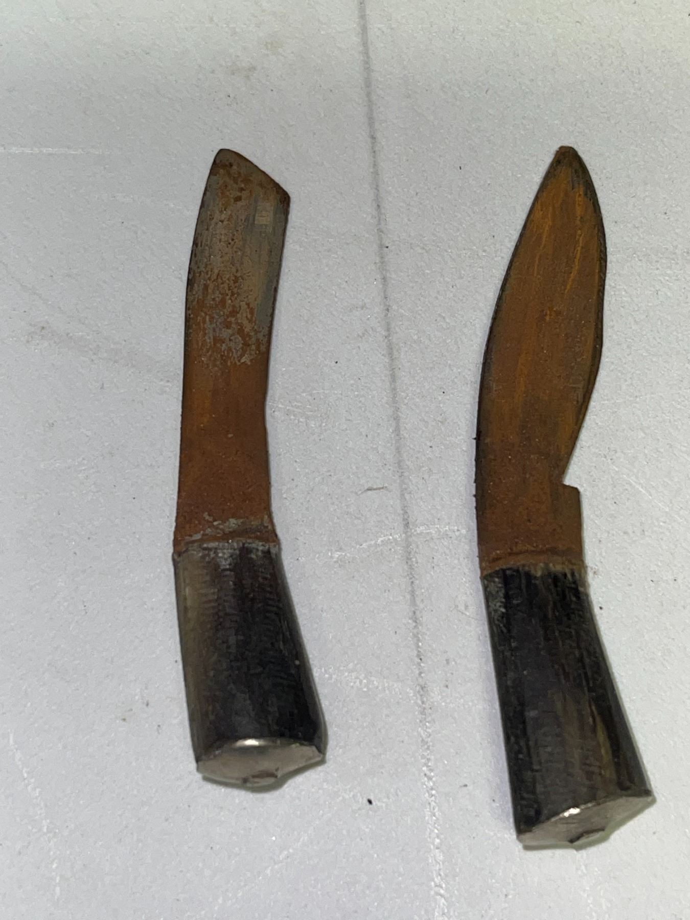 This handmade knife is in decent shape but will require some cleaning and sharpening.