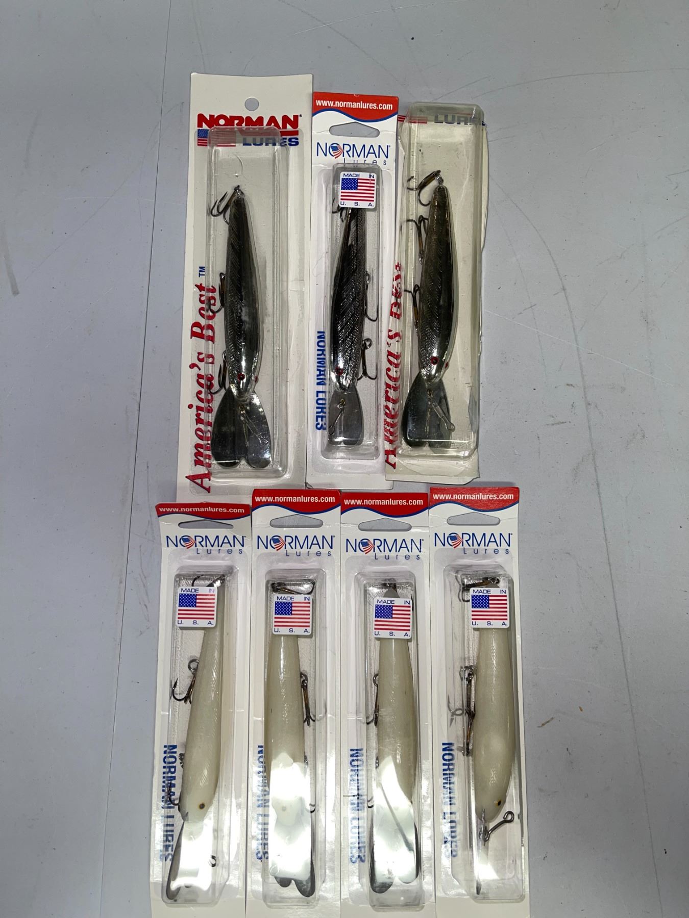 7 Vintage Bill Norman Deep-Diving Minnows - 4 1/2in body