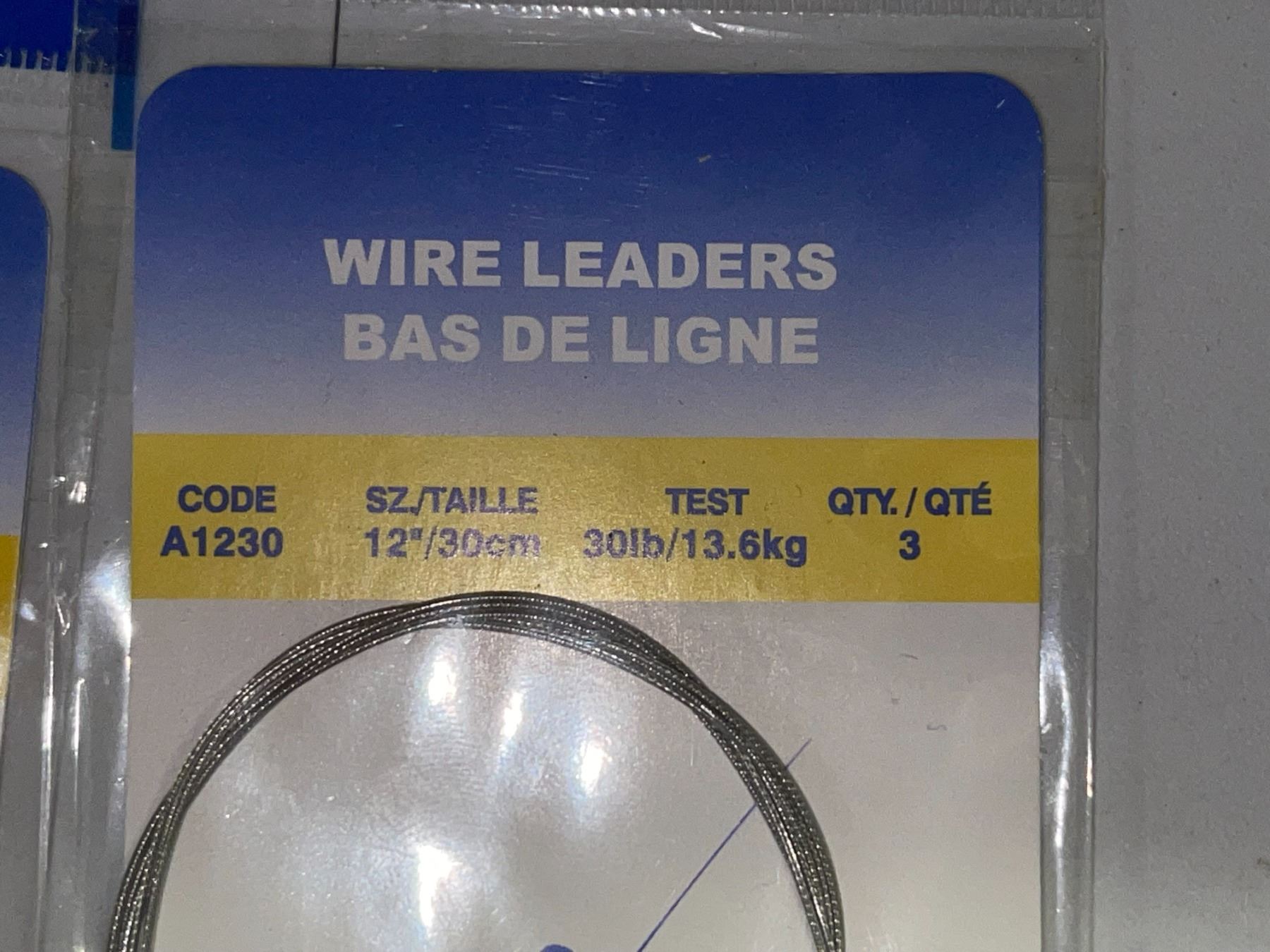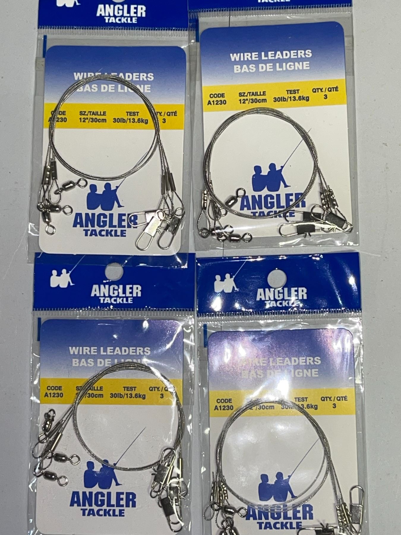 - 4 pks ANGLER TACKLE 12in 30lb test Wire Leaders 3pk