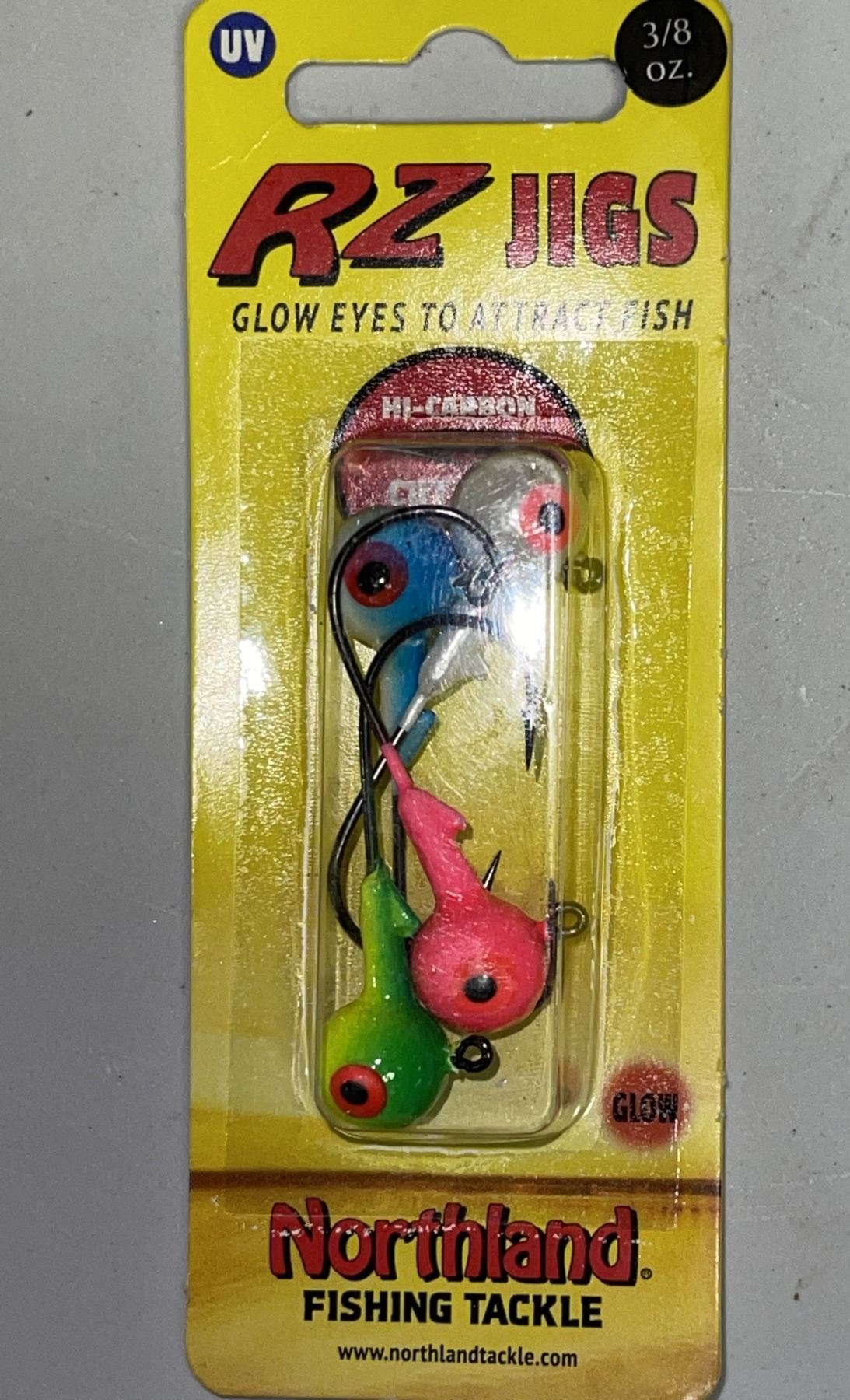 - 1 pk NORTHLAND RZ UV 3/8oz Assorted color Jigs Heads 4pk