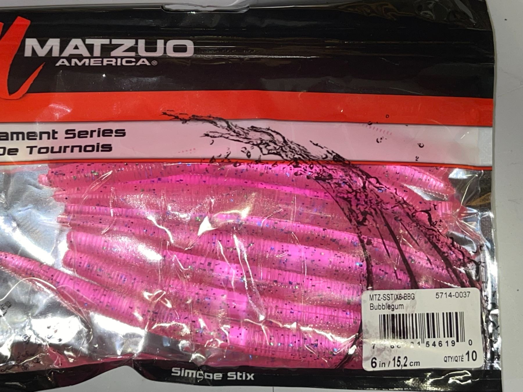 - 1 pk MATZUO 6in Clear Bubblegum Sparkle rubber worms 10pk