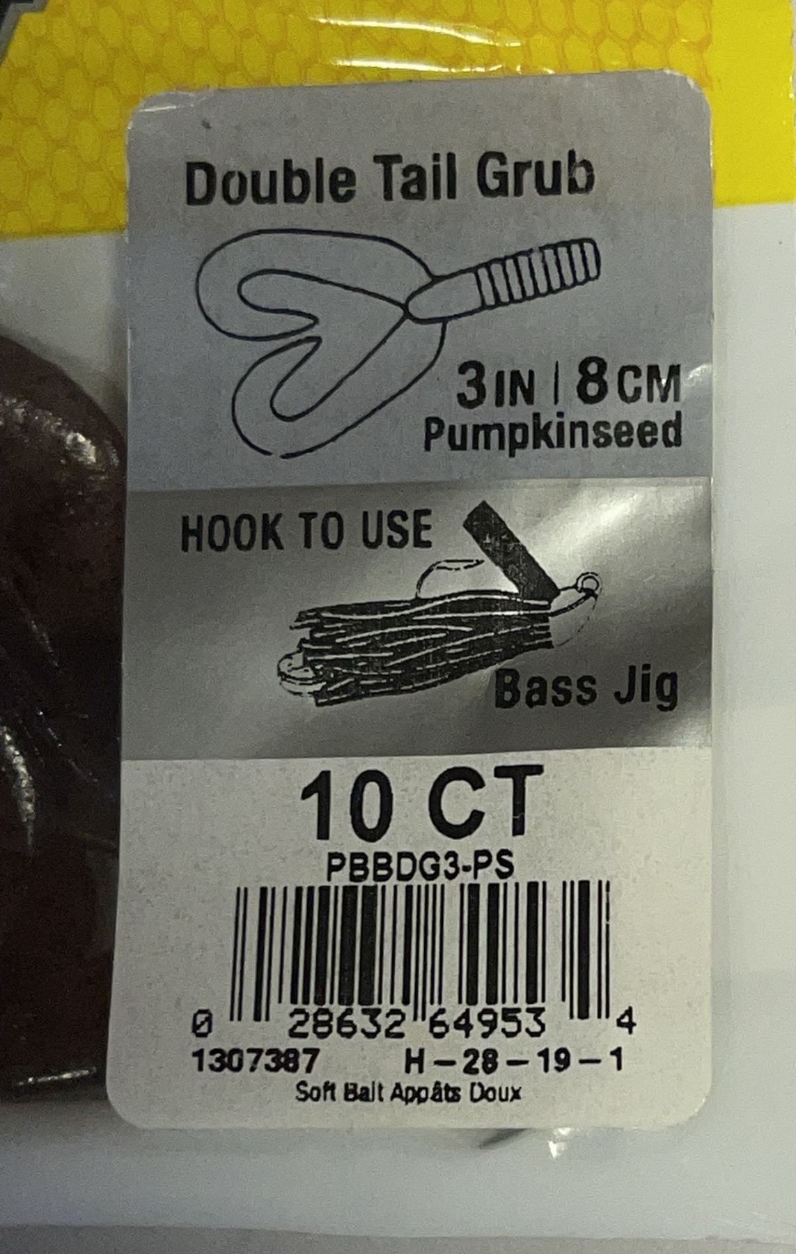 - 1 pk BERKLEY 3in Pumpkin Seed Double Tail grubs 10pk