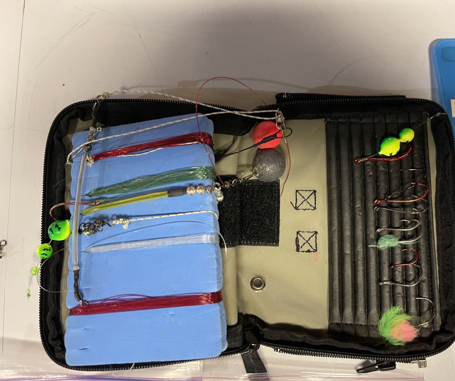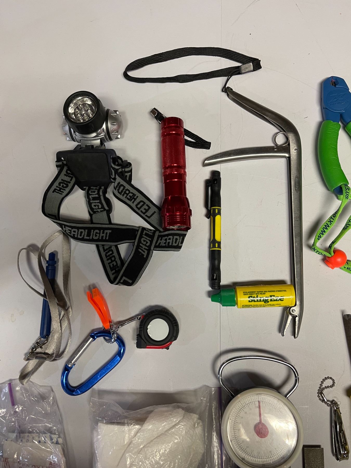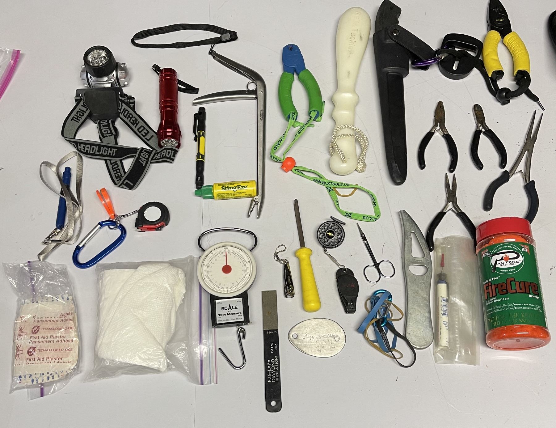 It contains everything you might need for a day on the water, including toilet paper.....