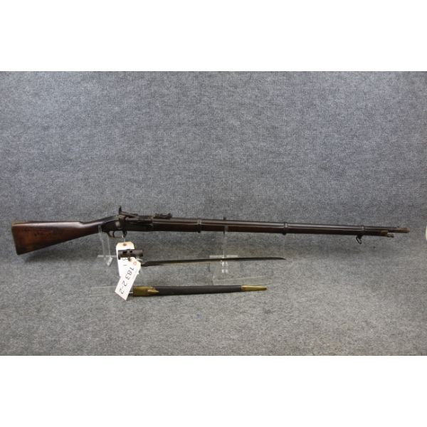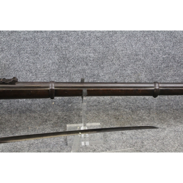 Expected handling marks for a 170 year old gun. Lock works perfectly. Appears issue complete. Comes with bayonet.