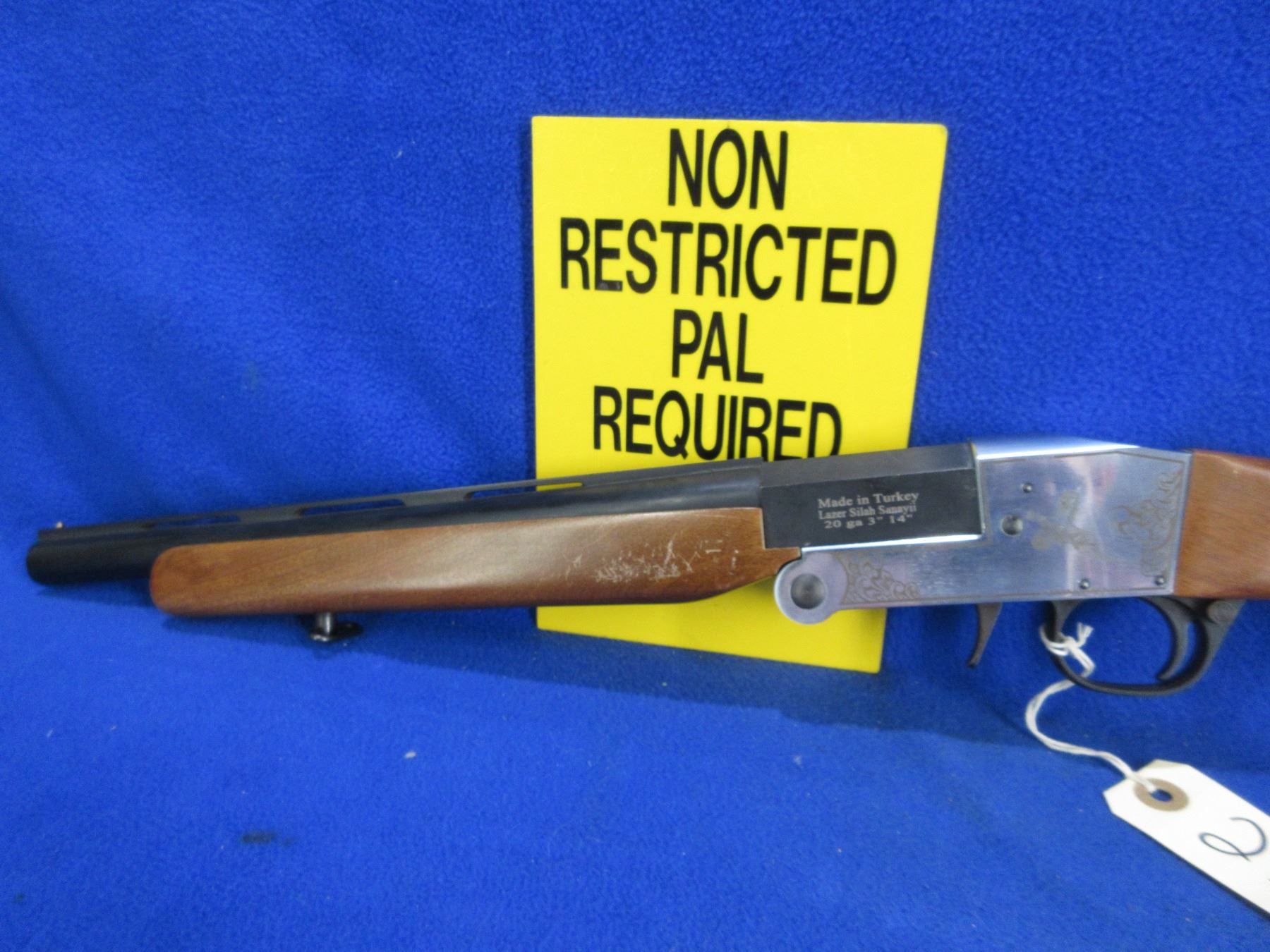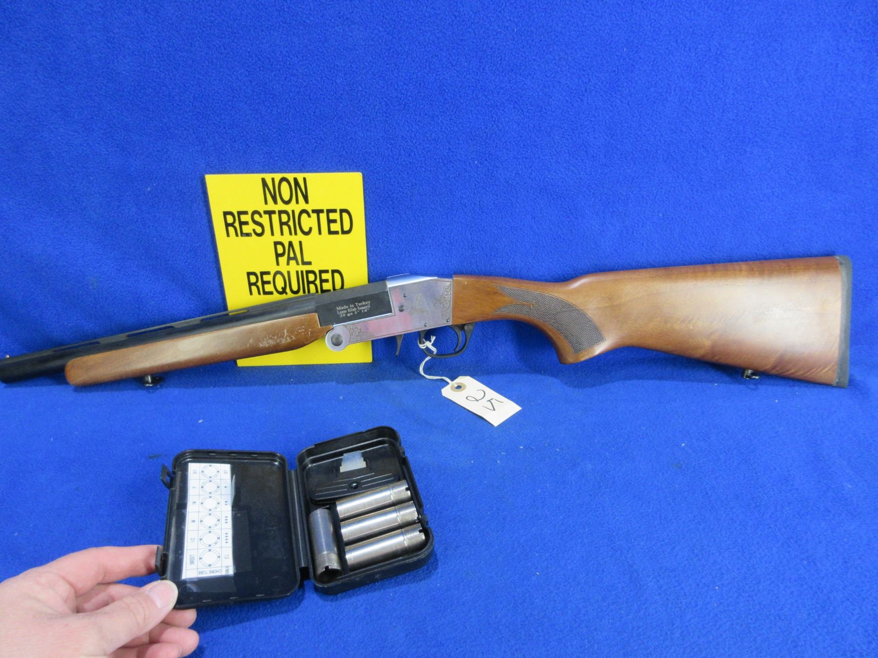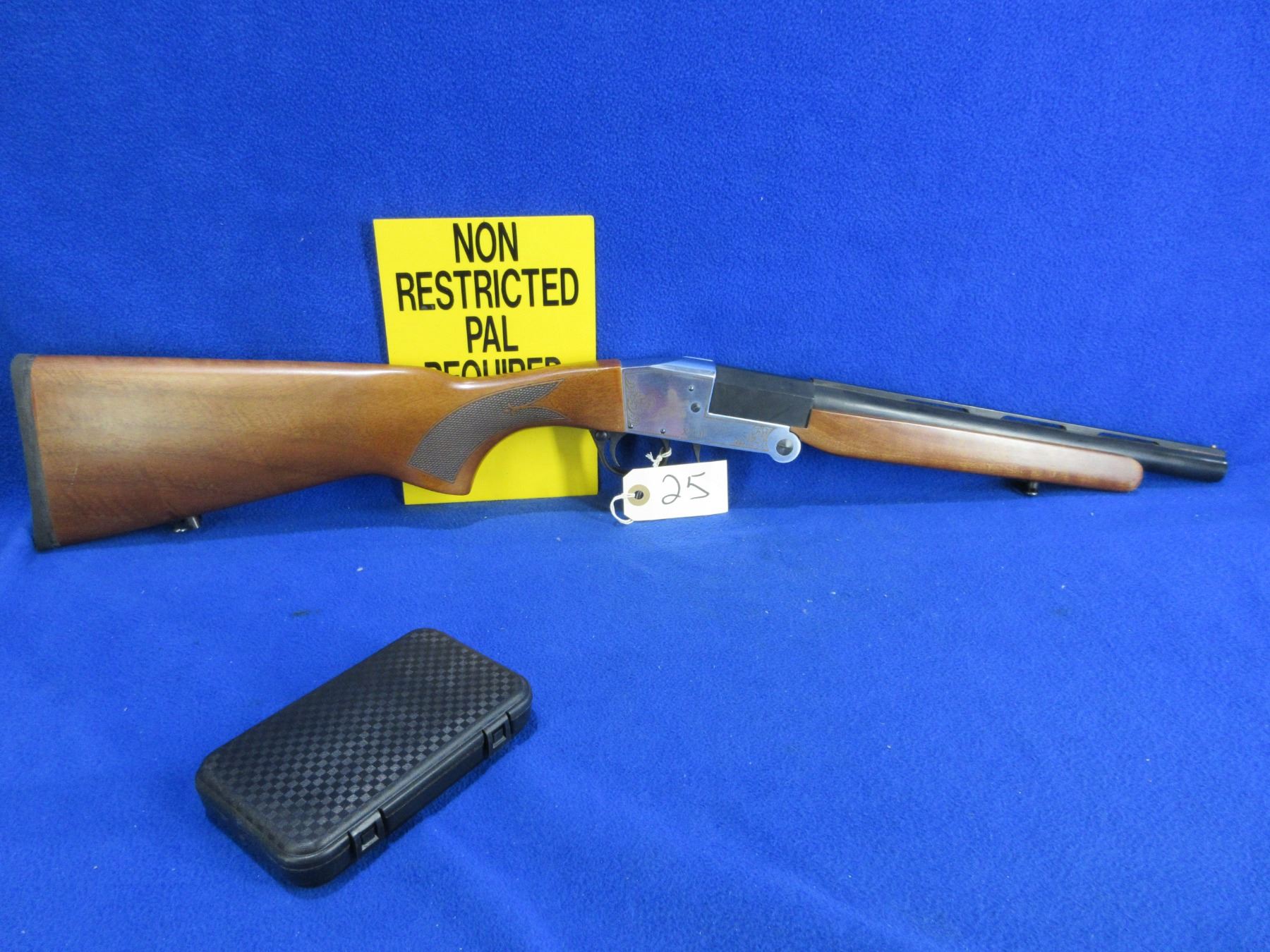Non-Restricted - Lazer Arms Model XT10 in 20 Ga. 3" - This is a tip up folding single shot shotgun with removable chokes, action is tight and appears to be in good to very good working order. Vent rib barrel is 14", bore is good to very good, bluing is good, has bead front sight, stock is good to very good, forearm is good with usage marks, rubber butt plate good, comes with 5 removable chokes, choke wrench, and swivels. Ser # 17CA-SB4862