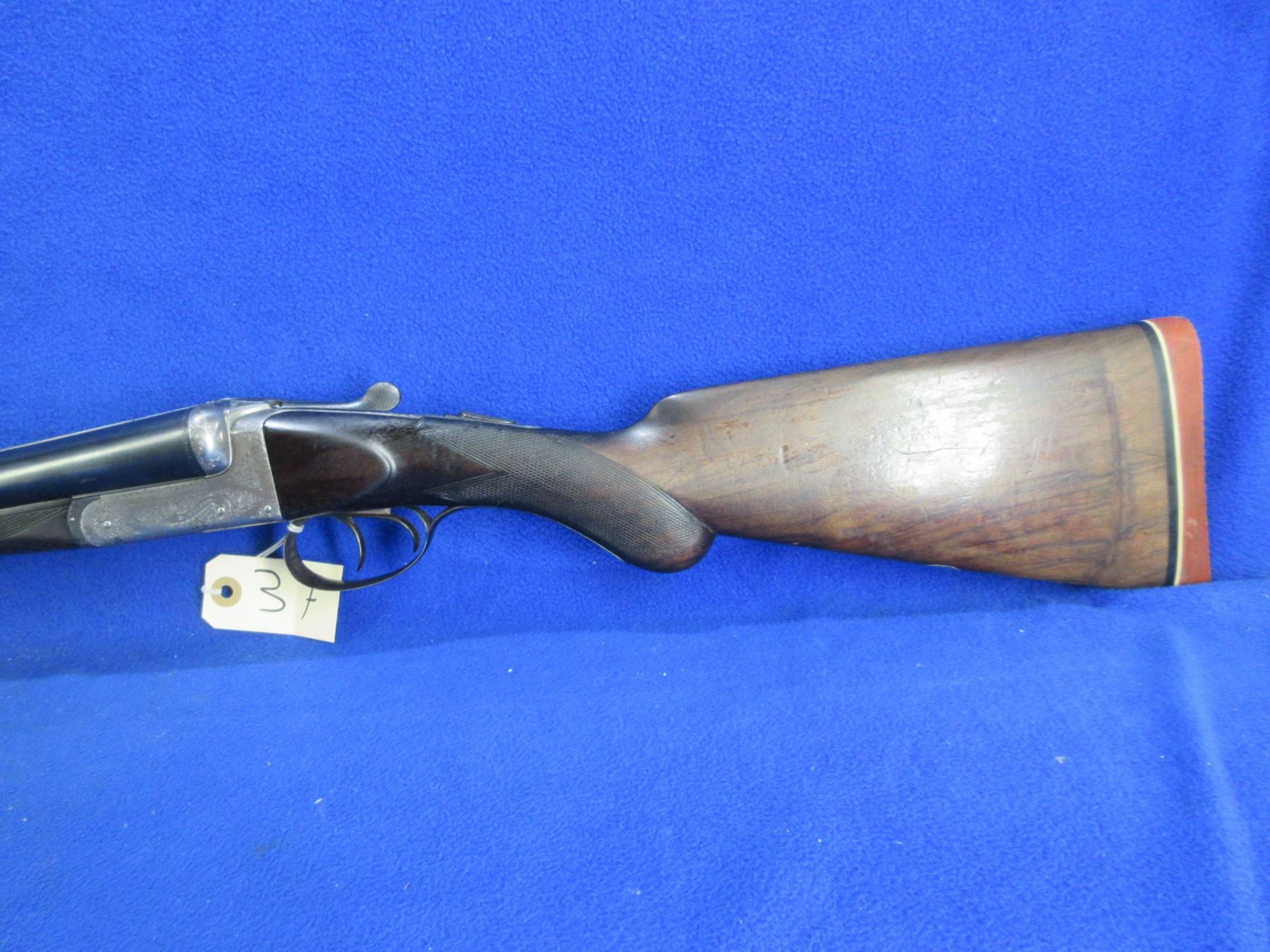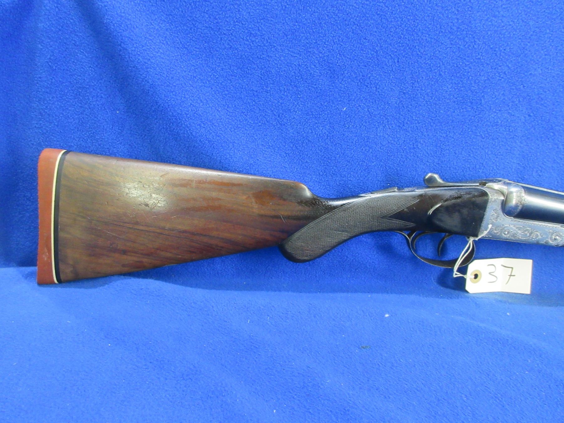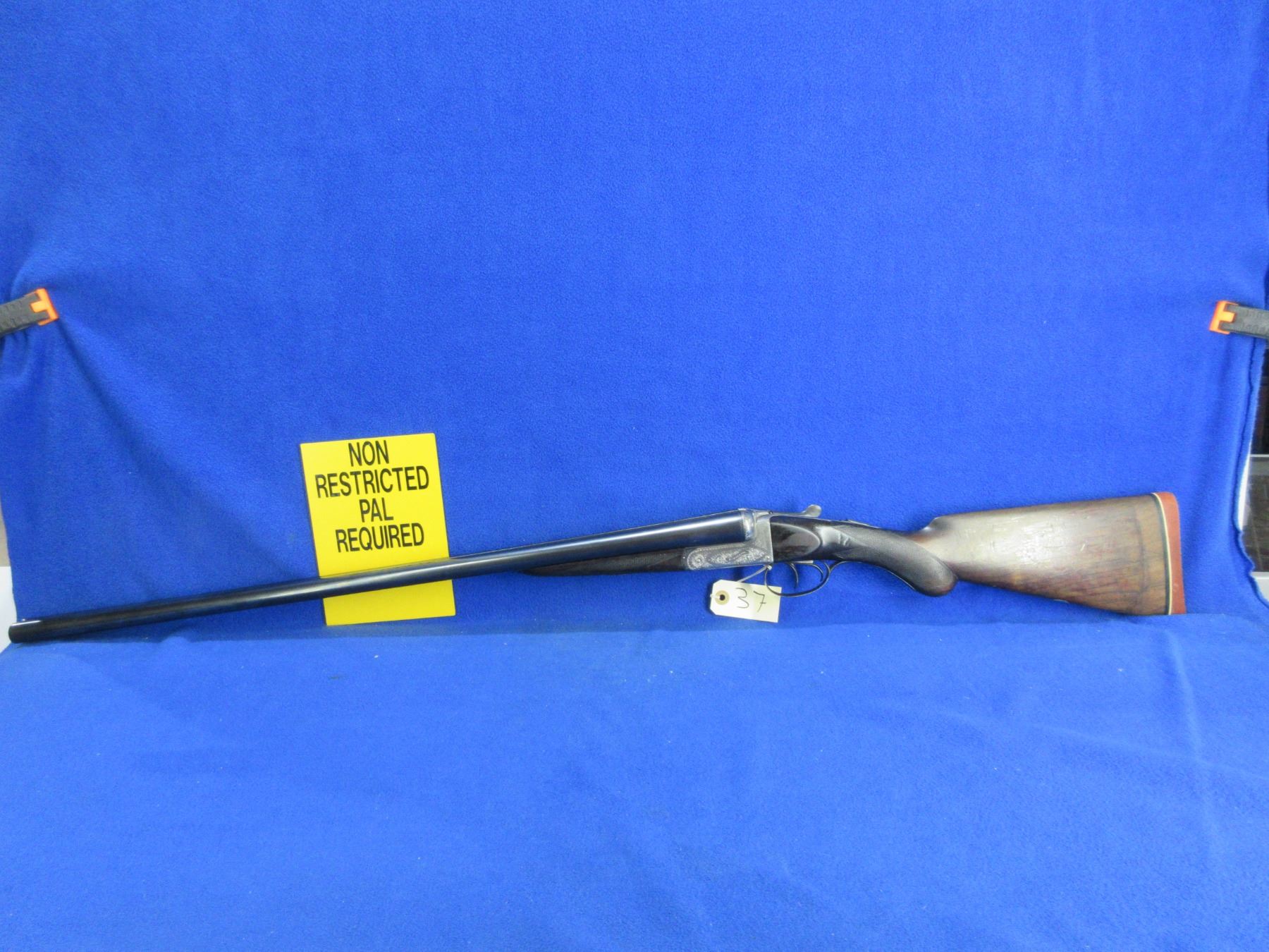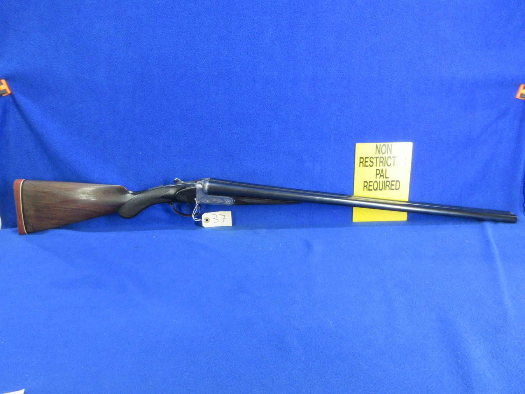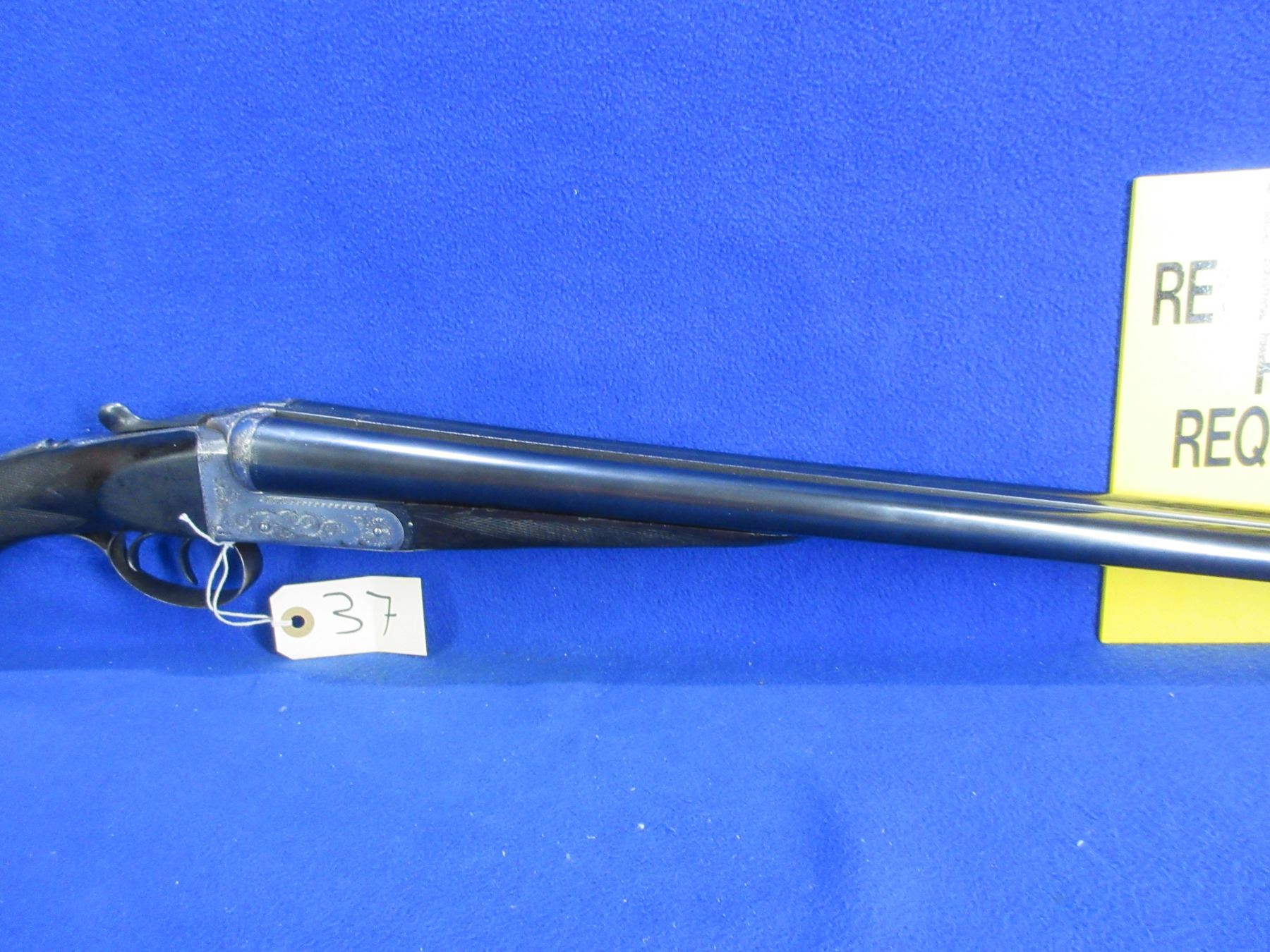 Non-Restricted - Walker SXS in 12 Ga. 2 1/2" - This is a tip up SXS shotgun, nicely engraved action is tight and appears to be in good working order but should not be fired as stock is cracked. Barrels are 28", bores are good to very good, bluing is good, has bead front sight, stock has a crack on both sides in the wrist area, forearm is good with many usage marks, rubber recoil pad good. Ser # None