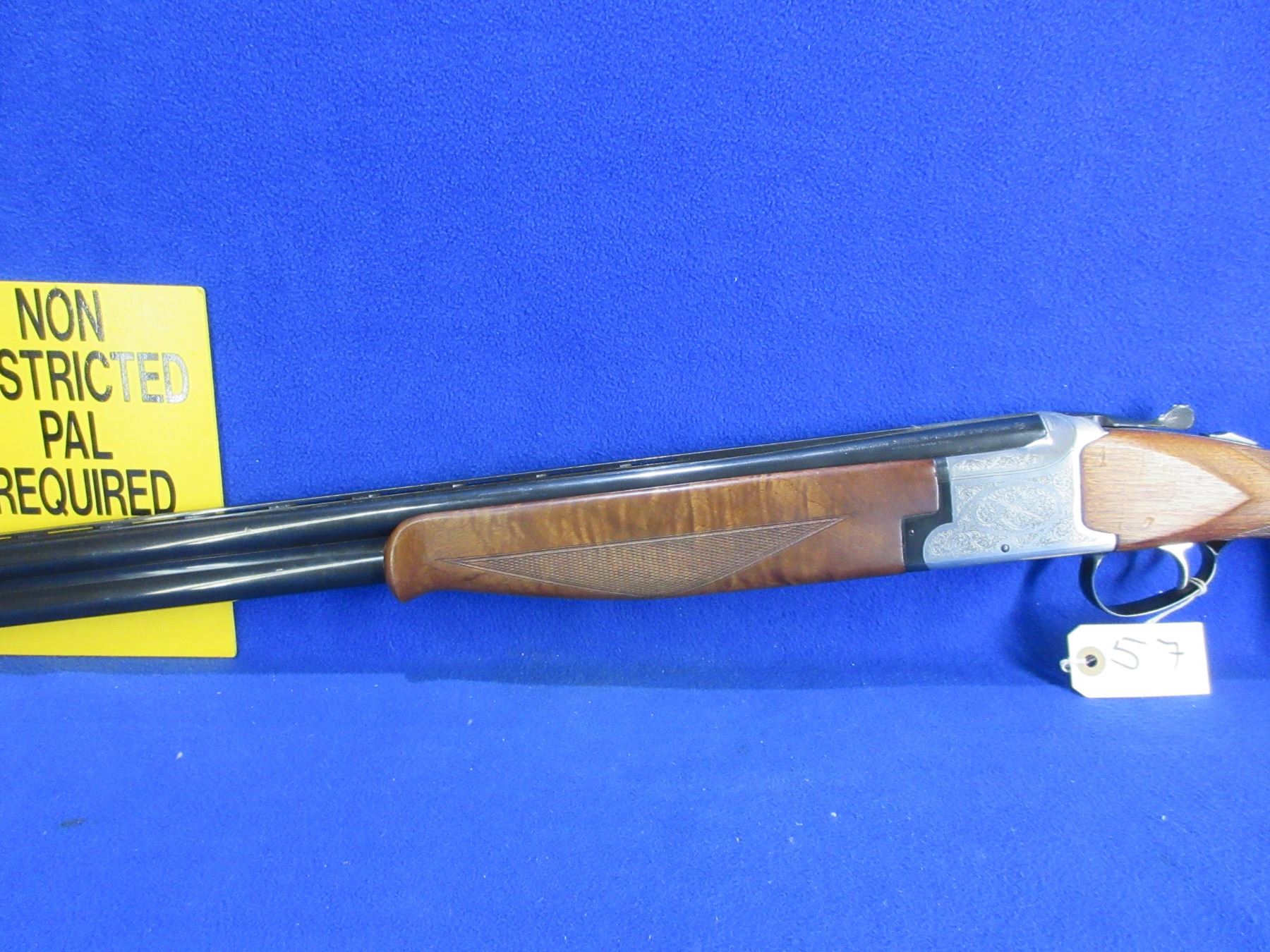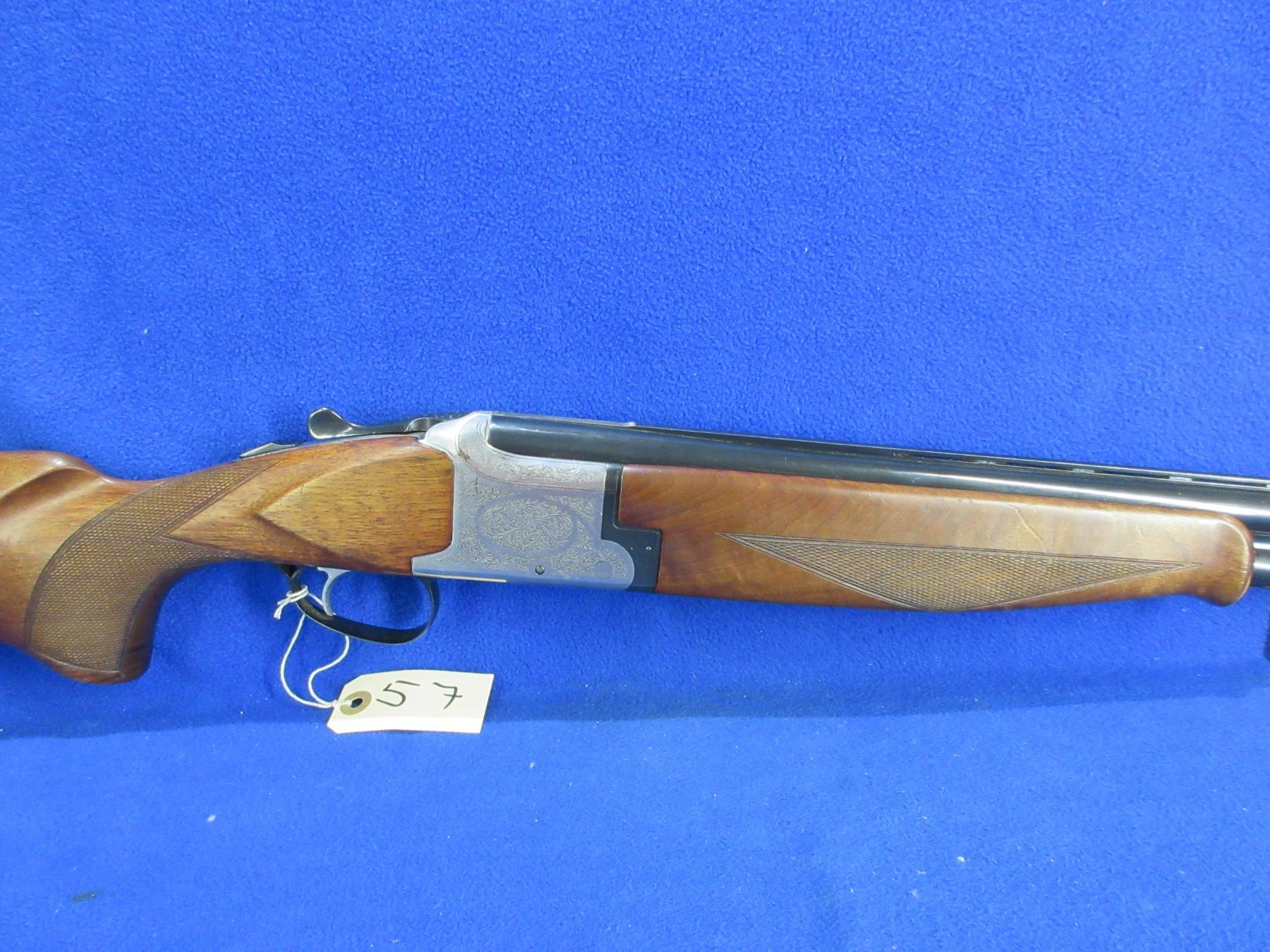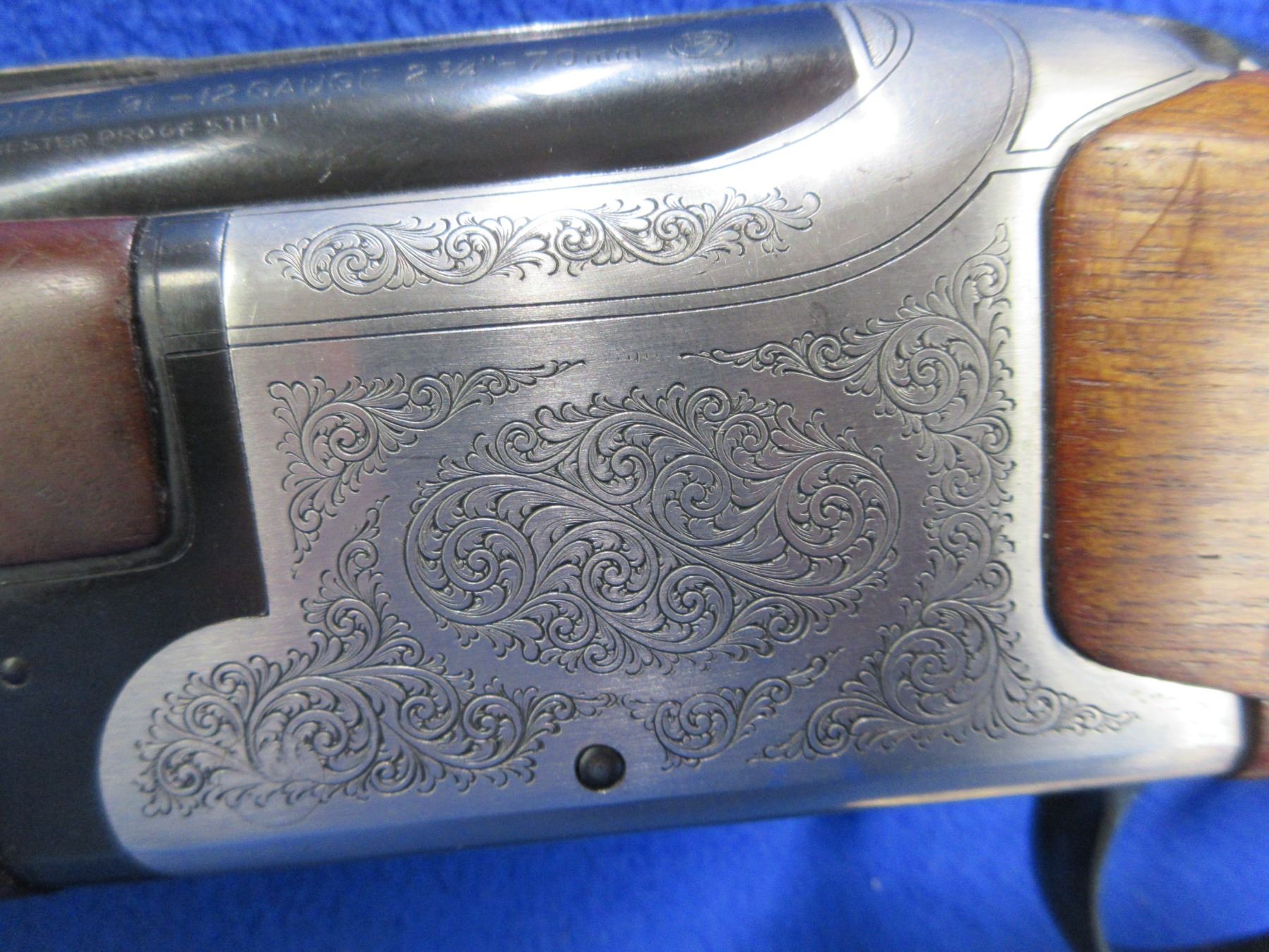 Non-Restricted - Winchester Model 91 in 12 Ga. 2 3/4" - This is a nice clean single trigger over/under shotgun, very nicely engraved action is tight and appears to be in very good working order. Vent rib barrels are 28", top barrel is full and bottom barrel is mod, bores are good to very good, bluing is good to very good, has bead front sight, stock is good to very good with usage marks, forearm is good to very good with usage marks, butt plate good. Ser # WK232410