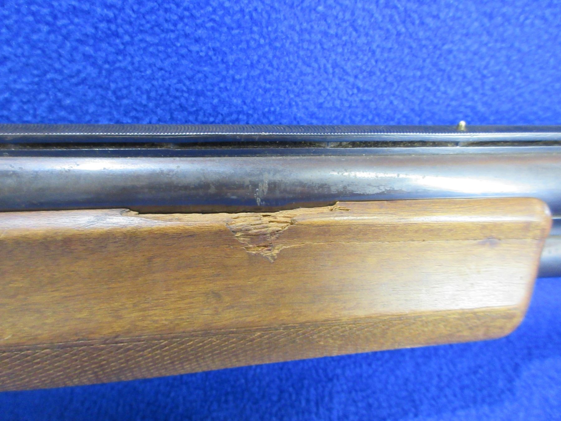Non-Restricted - Boito Miura O/U in 12 Ga. 2 3/4" - This is an over/under shotgun, action is tight and appears to be in good working order. Vent rib barrels are 28", bores are good, bluing is fair to good with light scratches and light pitting, has bead front sight, stock has a hairline crack behind the upper tang, forearm has a crack and a chip at the top on the right side, butt plate good, comes with swivels. Ser # 14244