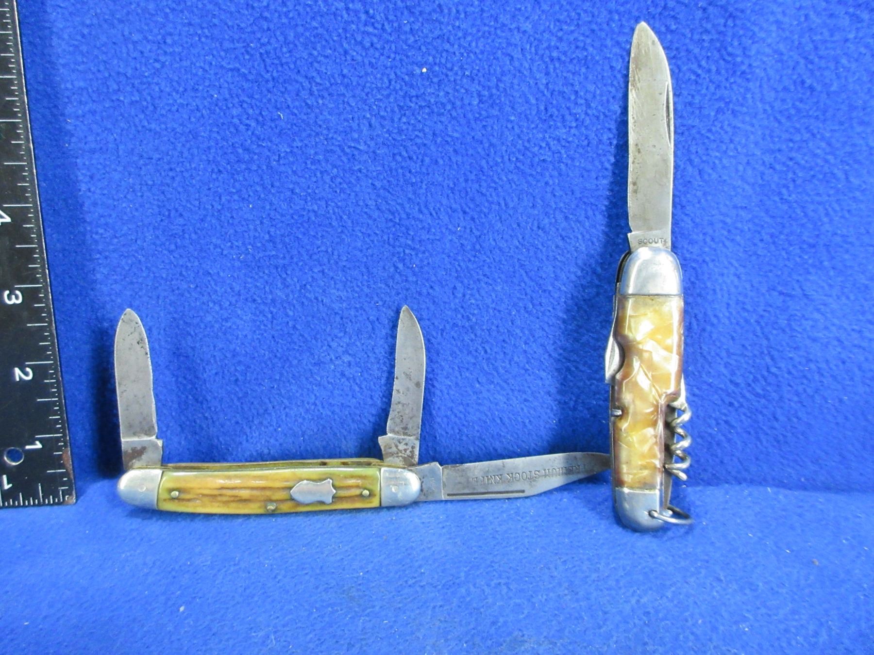 Lot 91 2 Vintage Folding Blade Pocket Knives - Italy and Scout Multi-Tool