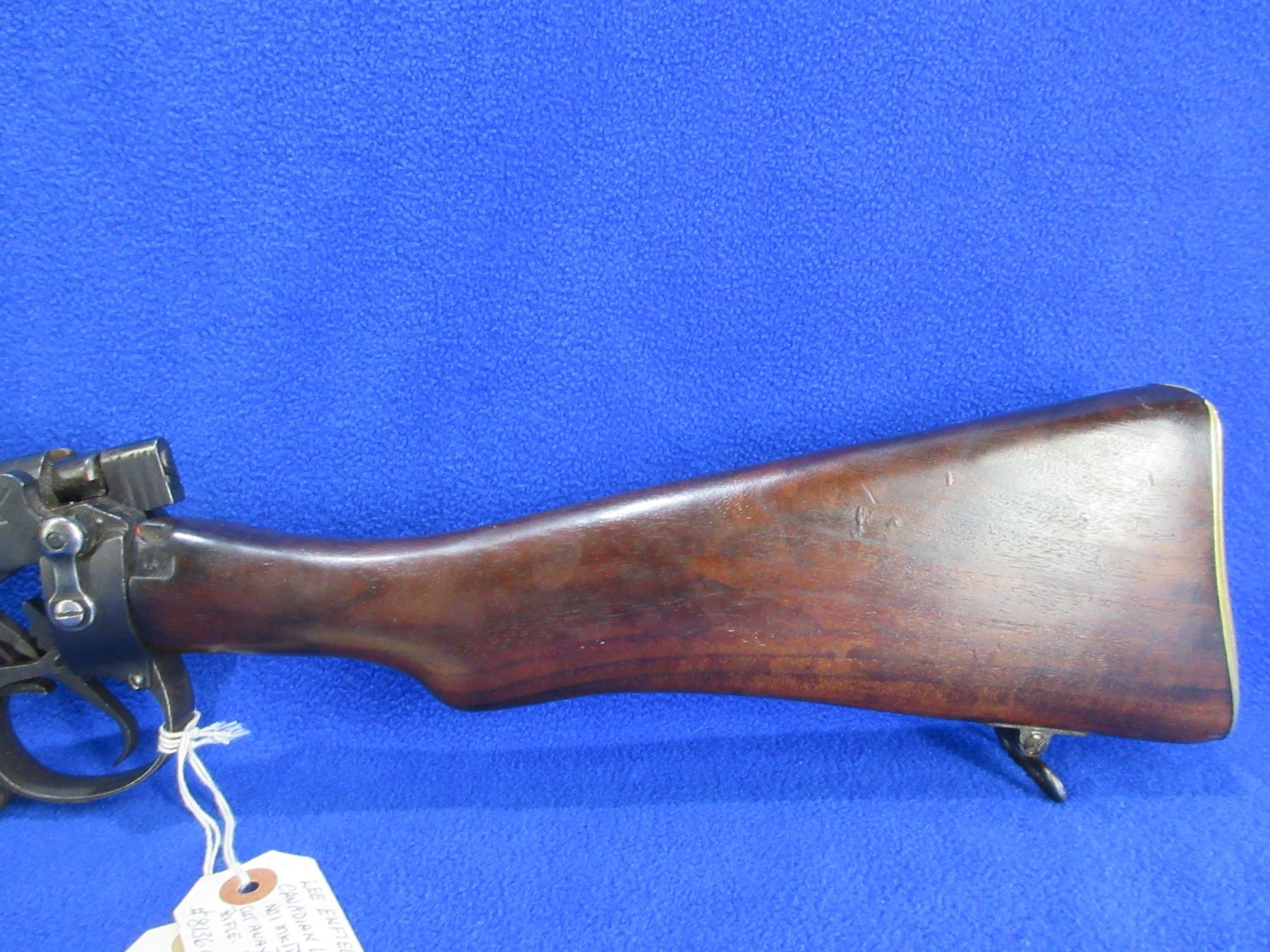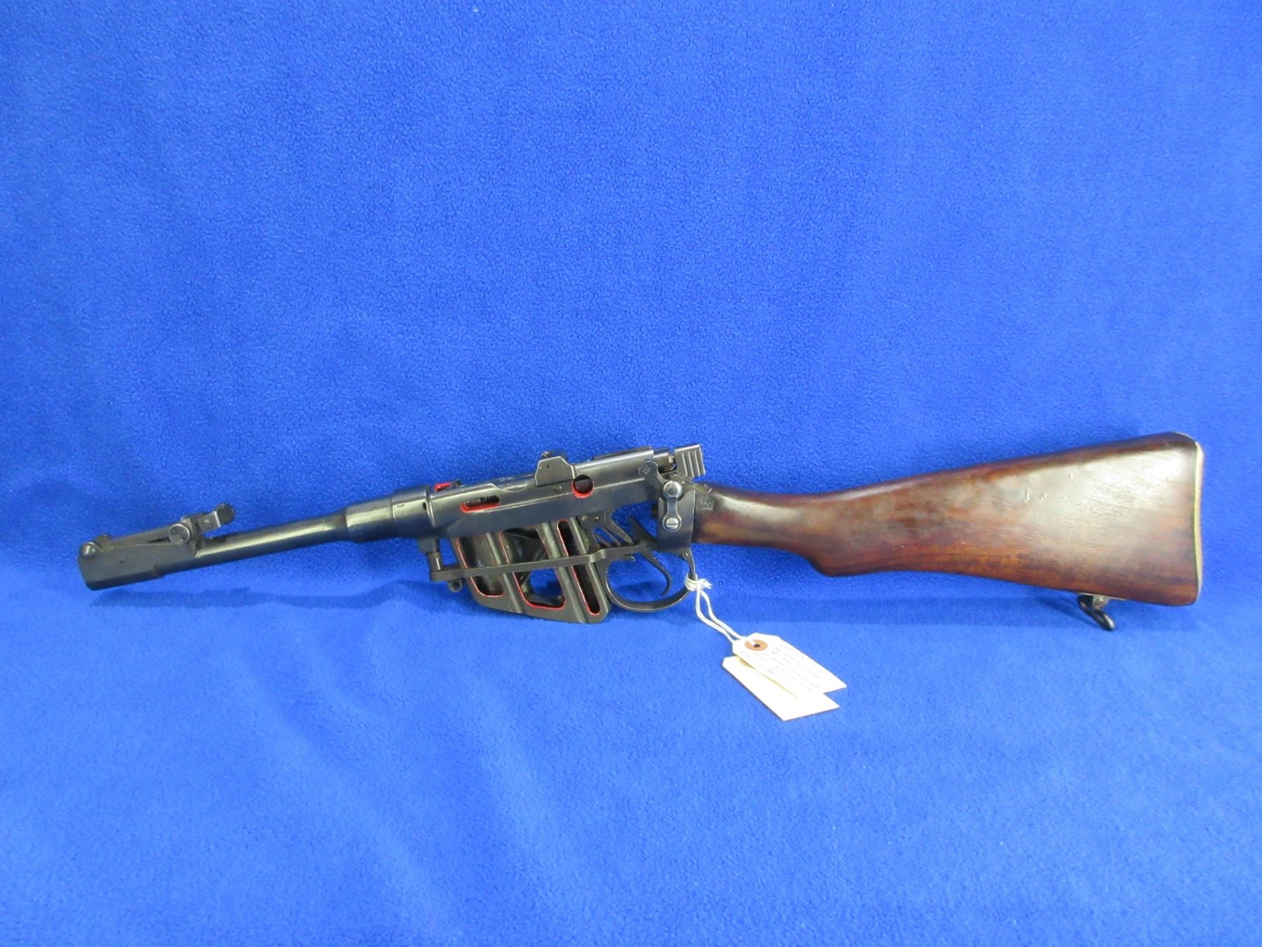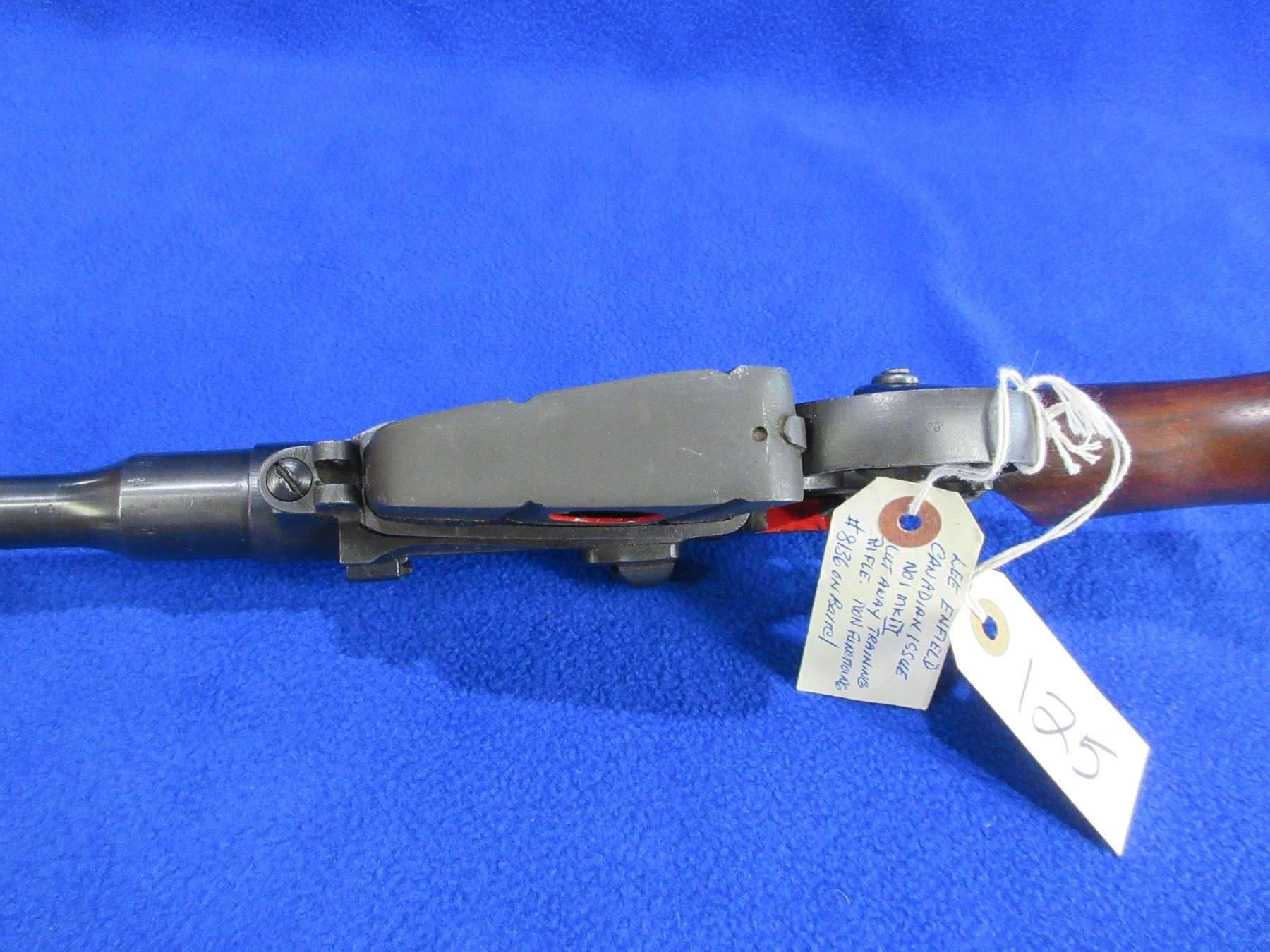No PAL Required - Lee Enfield No. 1 Mk II Cut Away in 303 British - Consignor lists this as Canadian issue (has C Broad Arrow) built at the Lee Enfield factory for training purposes, it is a bolt action cut away rifle with removable magazine, action is in good to very working order but can not be fired as a cut away. Barrel is 8 1/2"and is plugged, bluing is good, has ladder sight, stock is good with usage marks and is cut out in the wrist area, brass butt plate good. Ser # 8136