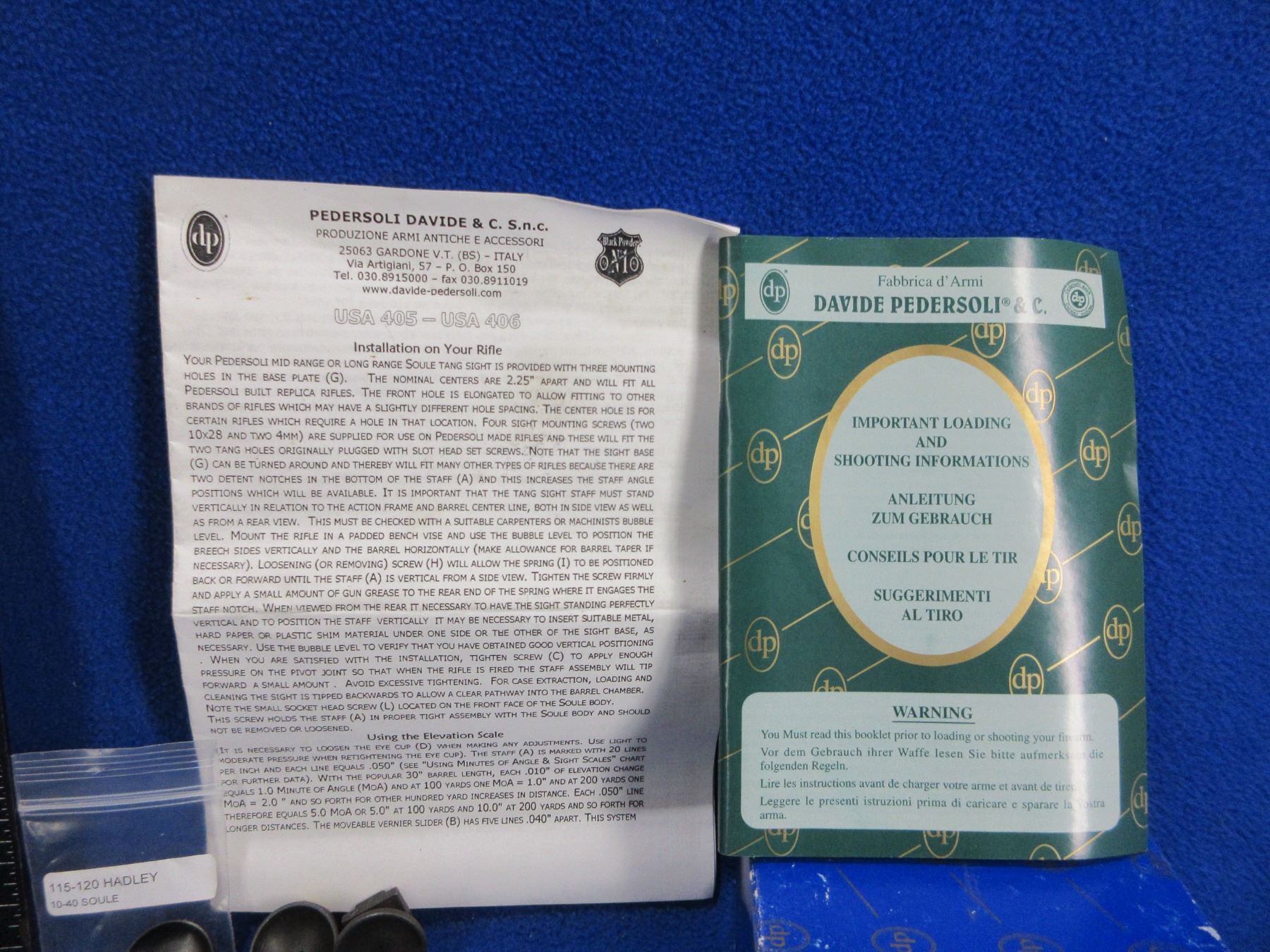 3 Peep Sight Apertures, Pedersoli Instruction Book, Box and VHS Tape