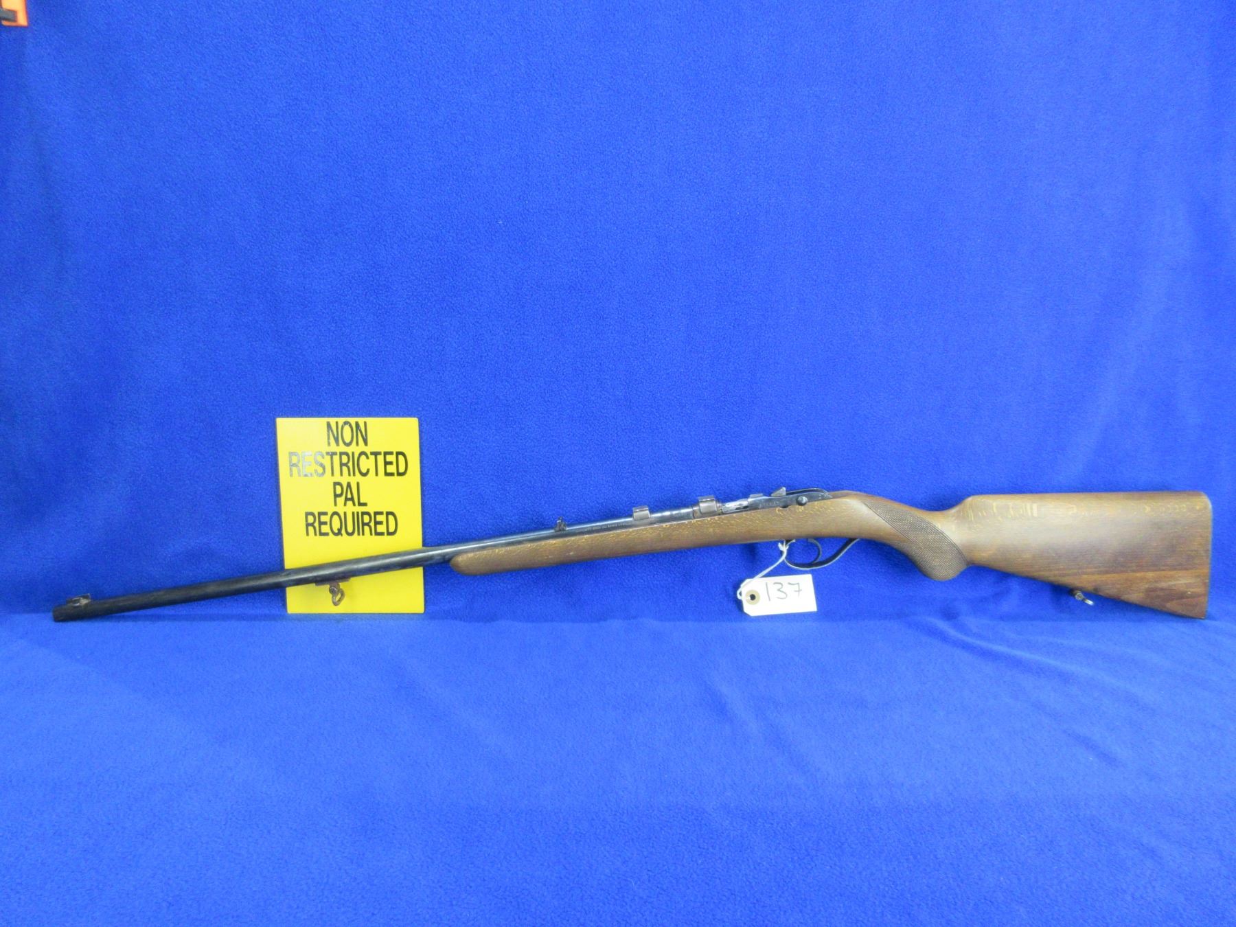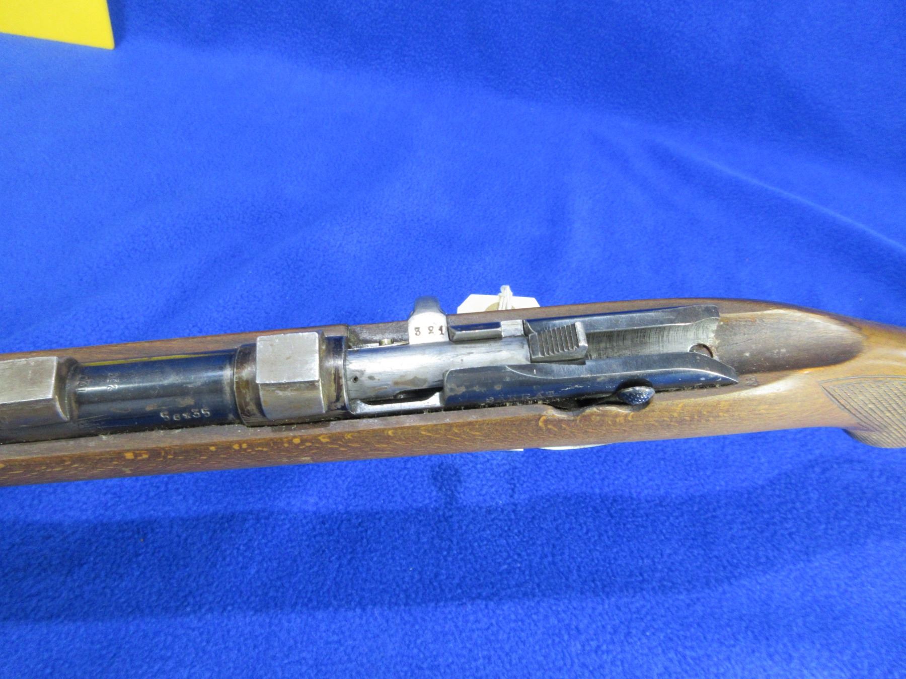 Non-Restricted - Husqvarna Sakrat in 5.6x35R Vierling - Converted from 22LR to 5.6x35R - This is a bolt action single shot rifle, action appears to be in good working order. Barrel is 24 1/2", rifling is good to very good, bluing has wear spots and some light rust, has both sights and integral bases, nice grain on the stock, stock is good with usage marks, metal butt plate good, comes with swivels. Ser #94321