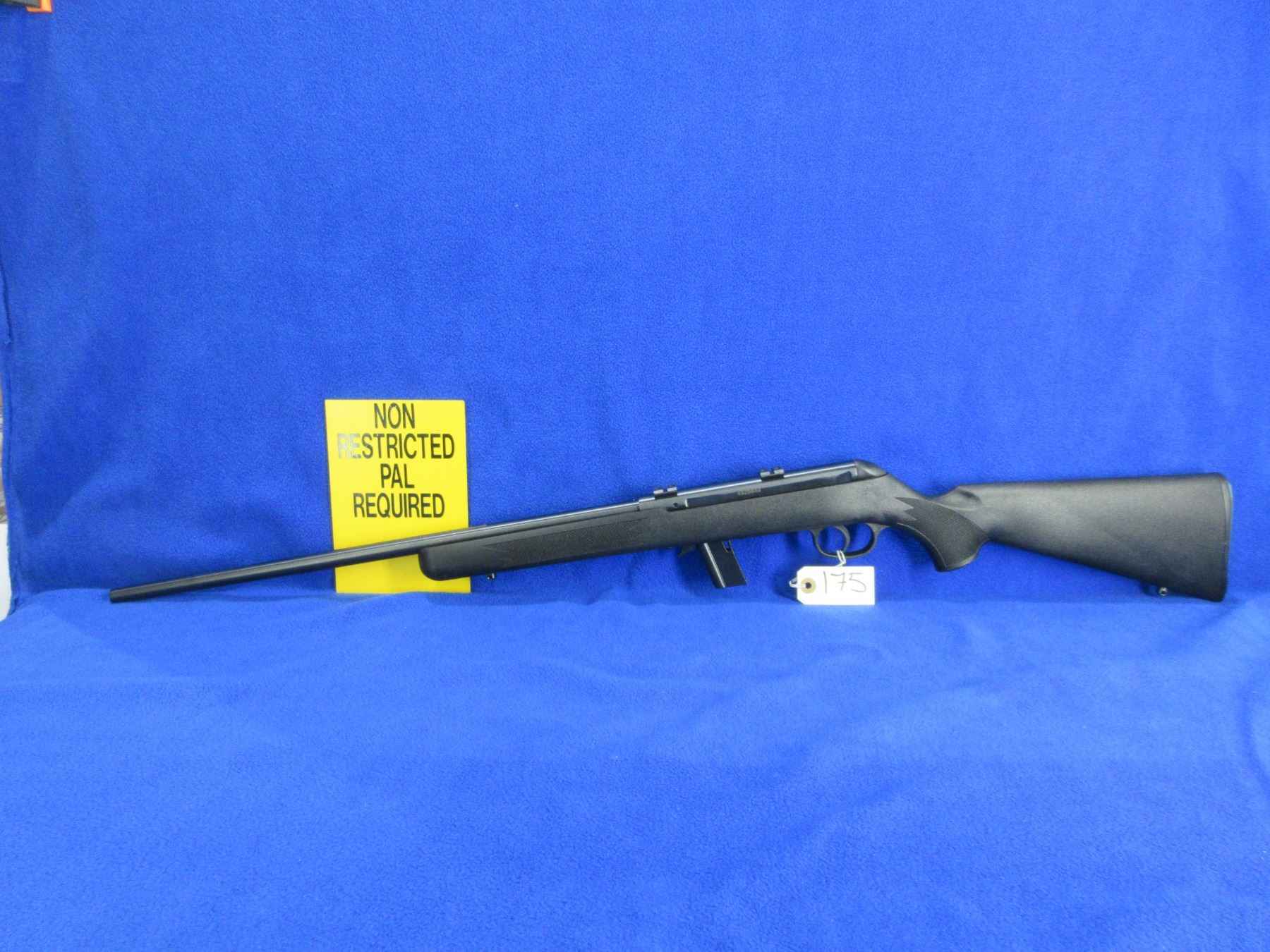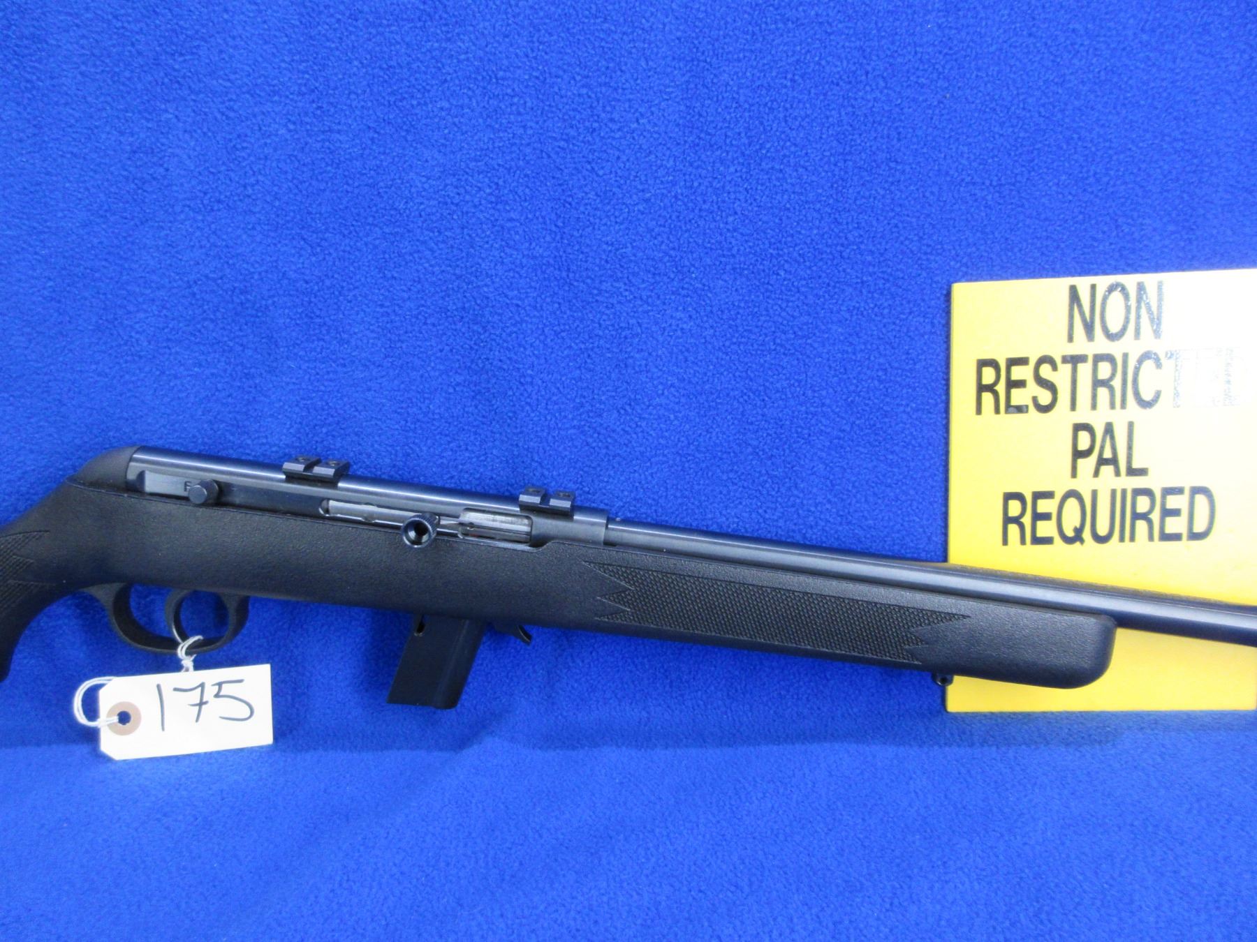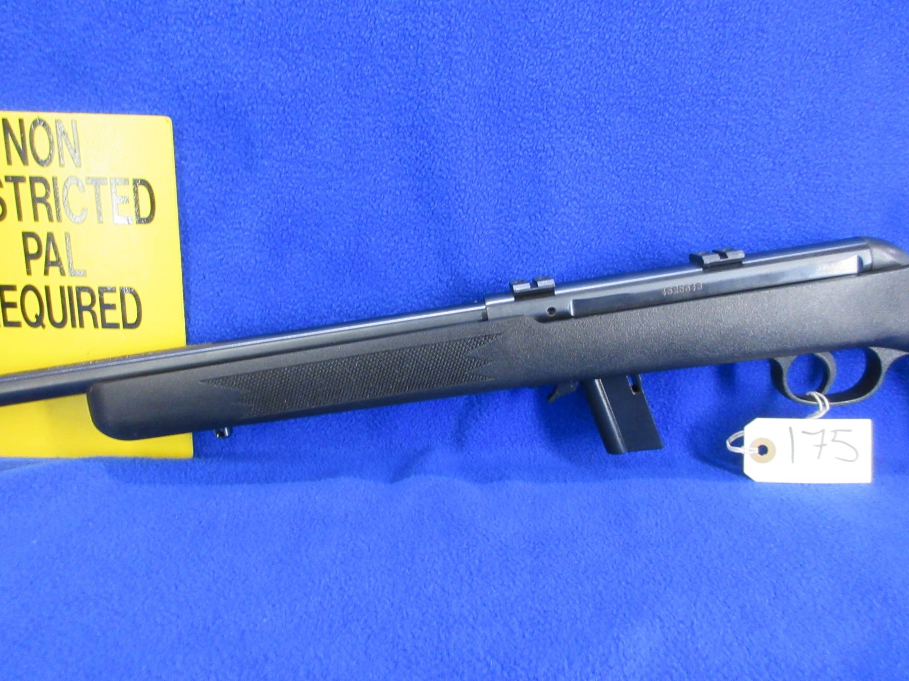 Non-Restricted - Savage Model 64 in 22 LR - This is a semi-auto rifle with removable magazine, action appears to be in good to very good working order. Barrel is 21", rifling is good to very good, black finish is good to very good, has no sights but has Weaver style bases, synthetic stock is good to very good, butt plate good, comes with swivel studs. Ser # 4525648