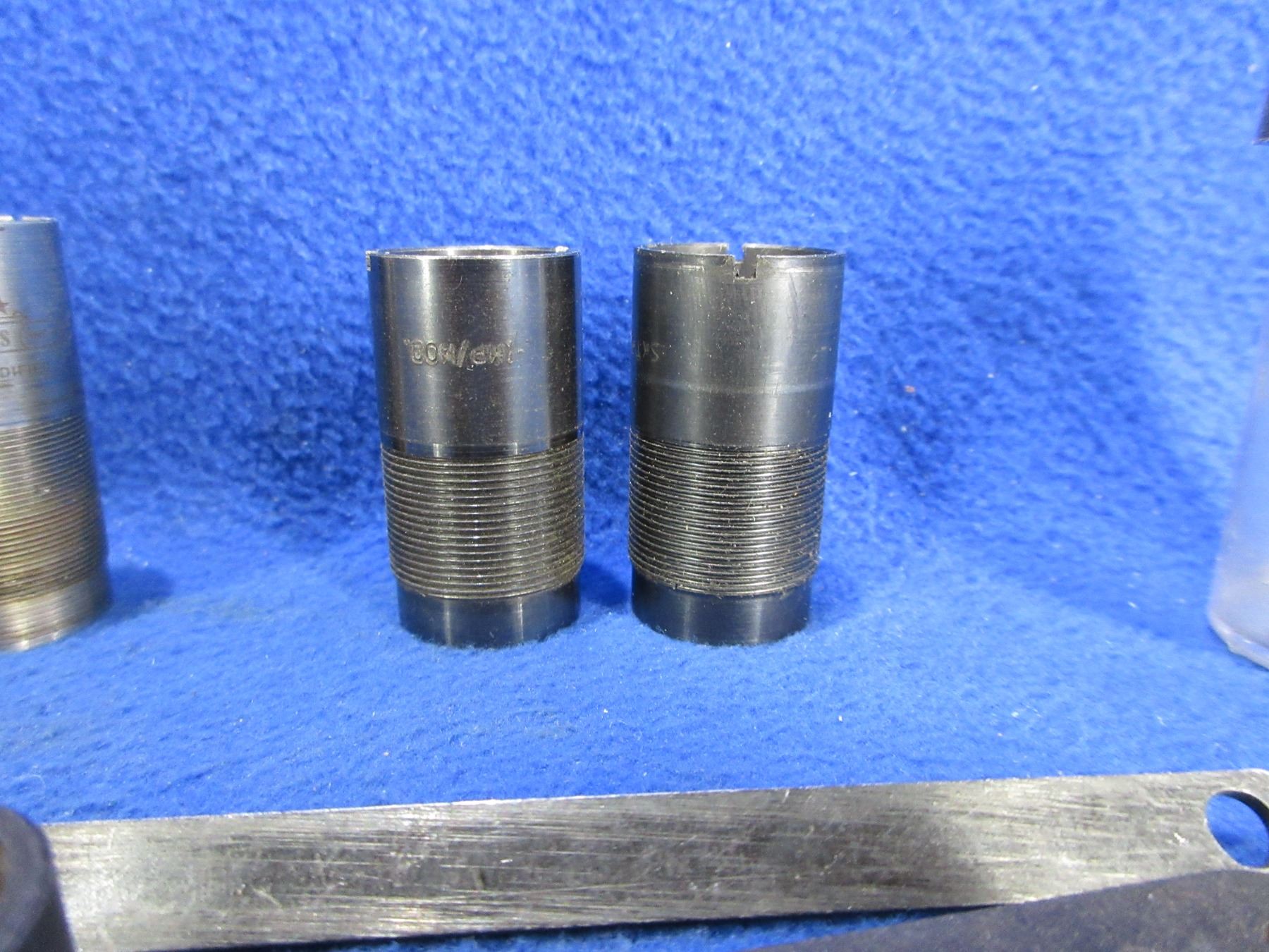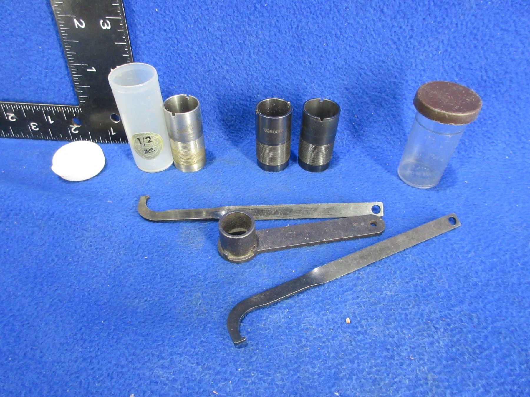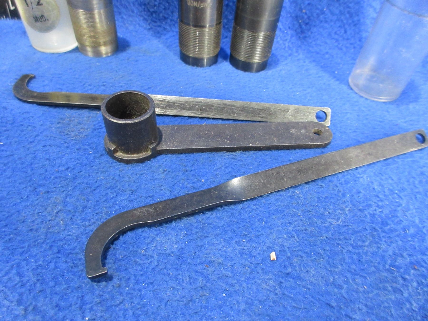 Lot 185 3 - 12 Ga. Shotgun Chokes (2 Imp/Mod, SKT-1) & 3 Wrenches