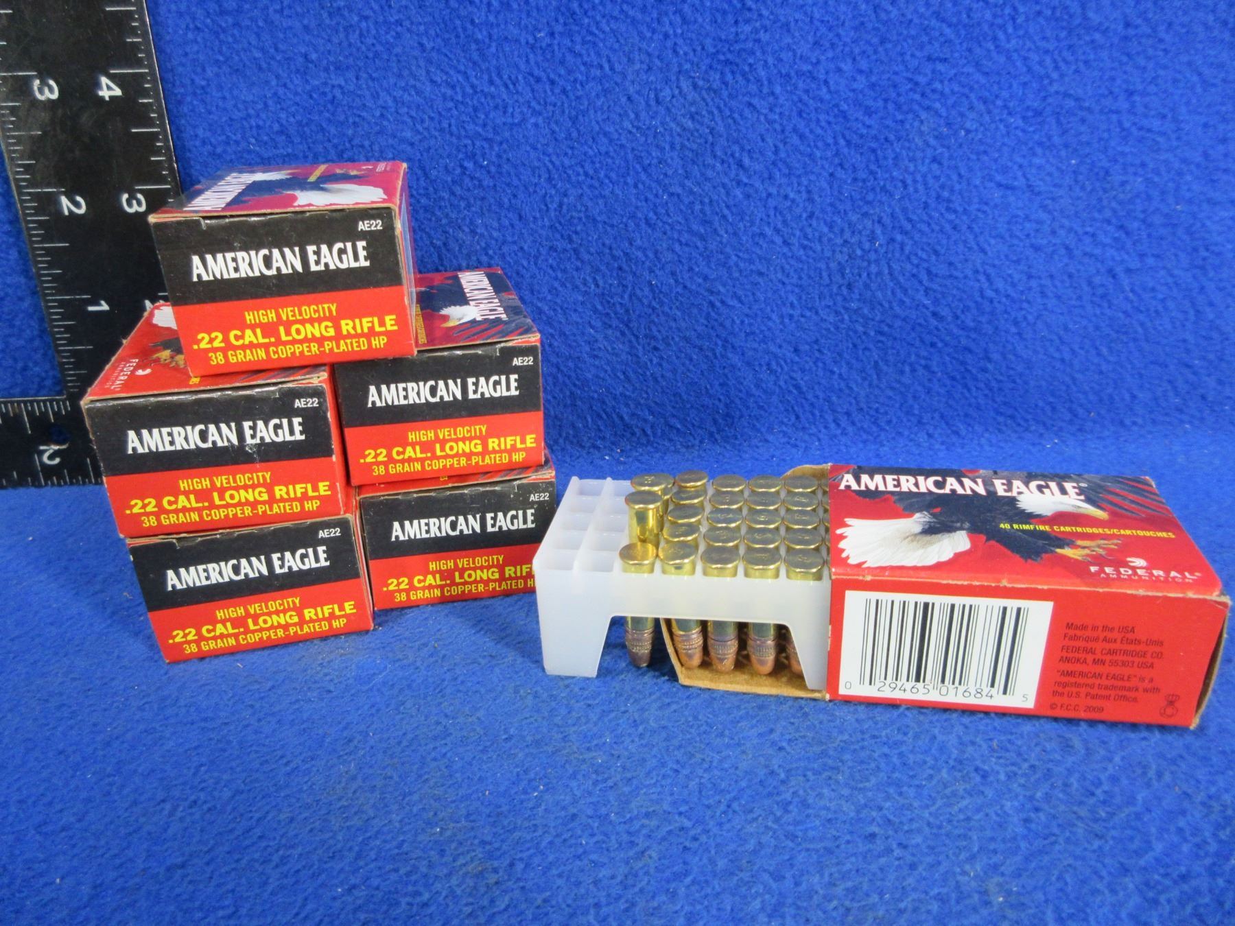22 LR 38gr Copper-Plated HP (Pick Up or Ship by UPS Only) Federal American Eagle Cartridges - 5 Boxes of 40, Box of 30