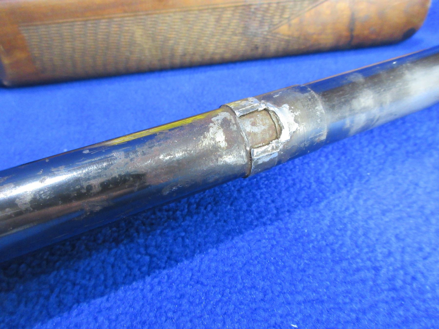 Non-Restricted - Valmet O/U in 12 Ga. 2 3/4" - This is an over/under shotgun, action is tight and shotgun is in non working order as doesn't cock and forearm latch is broken on barrel, piece is taped to action. Barrels are 26", bores are good, bluing is fair to good with wear and pitting, has bead front sight, stock has been shortened then lengthened, forearm has a hairline crack by the release button, butt plate good. Ser # 2988