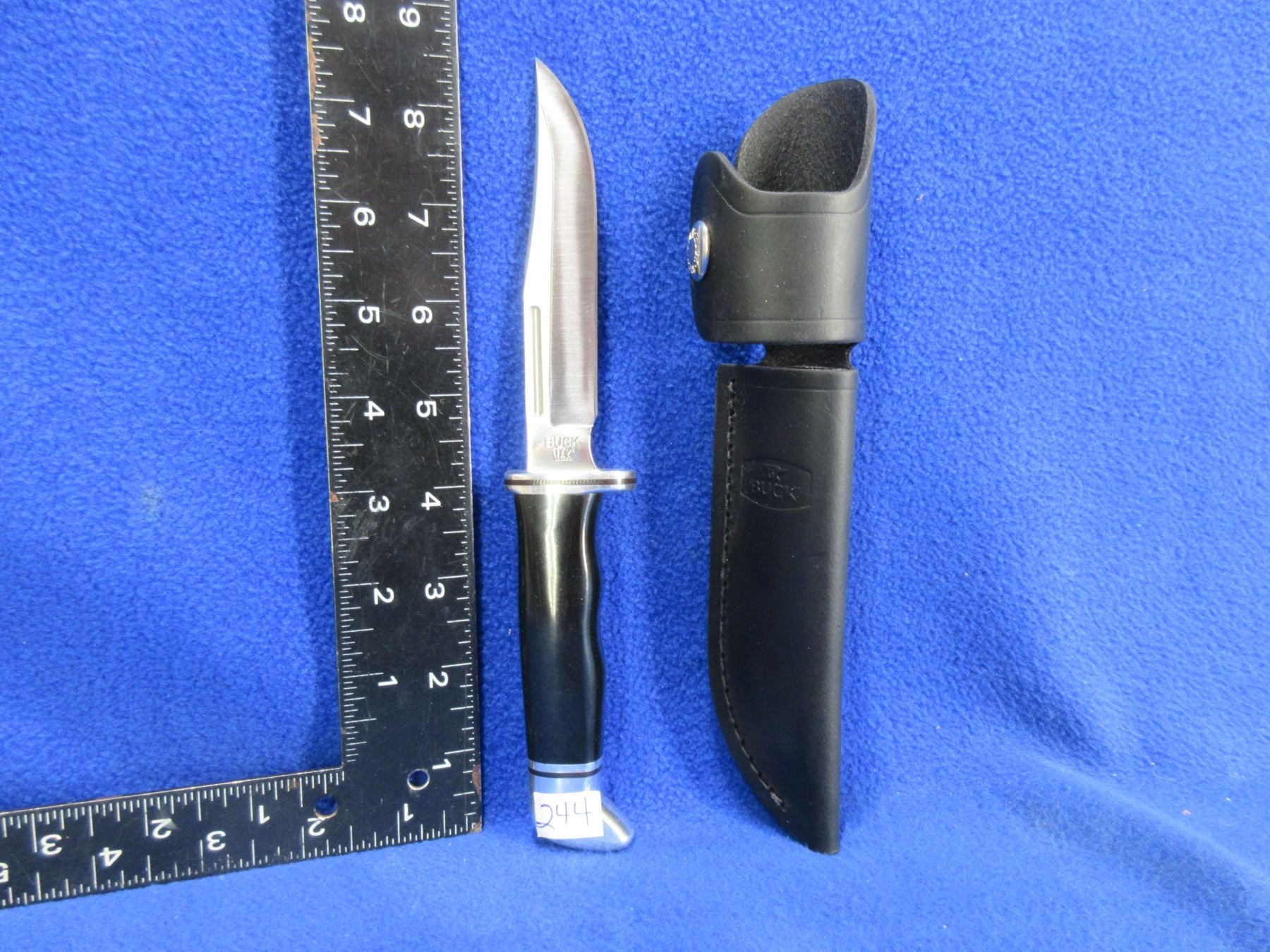 Lot 244 Buck 117 Brahma Fixed Blade Knife with Leather Sheath