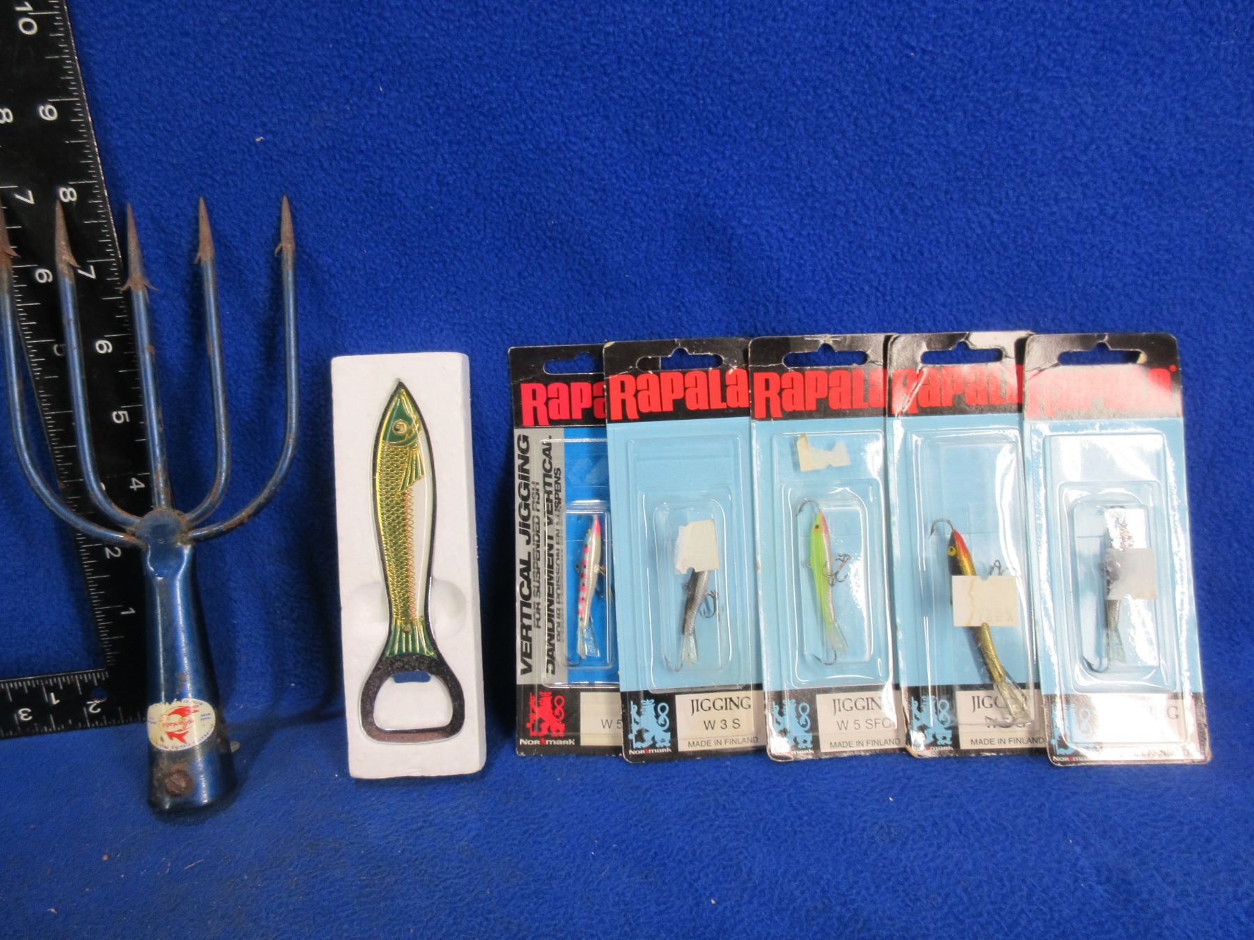Lot 288 Lot of Misc. - 5 Rapala Jigs, Fish Spear, Bottle Opener