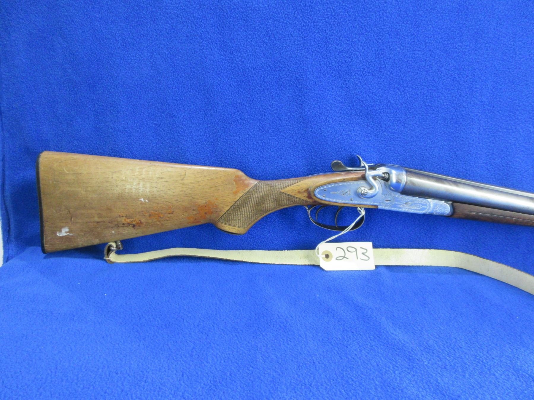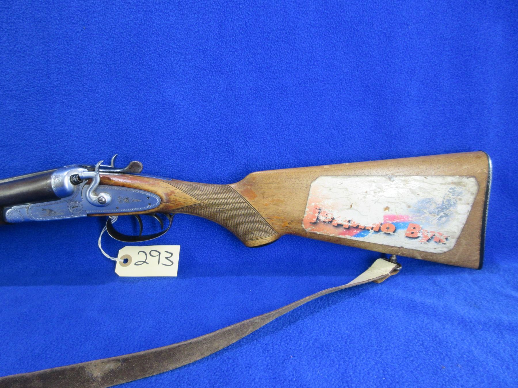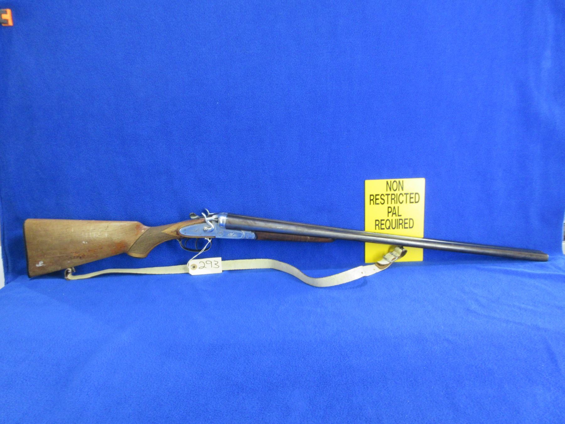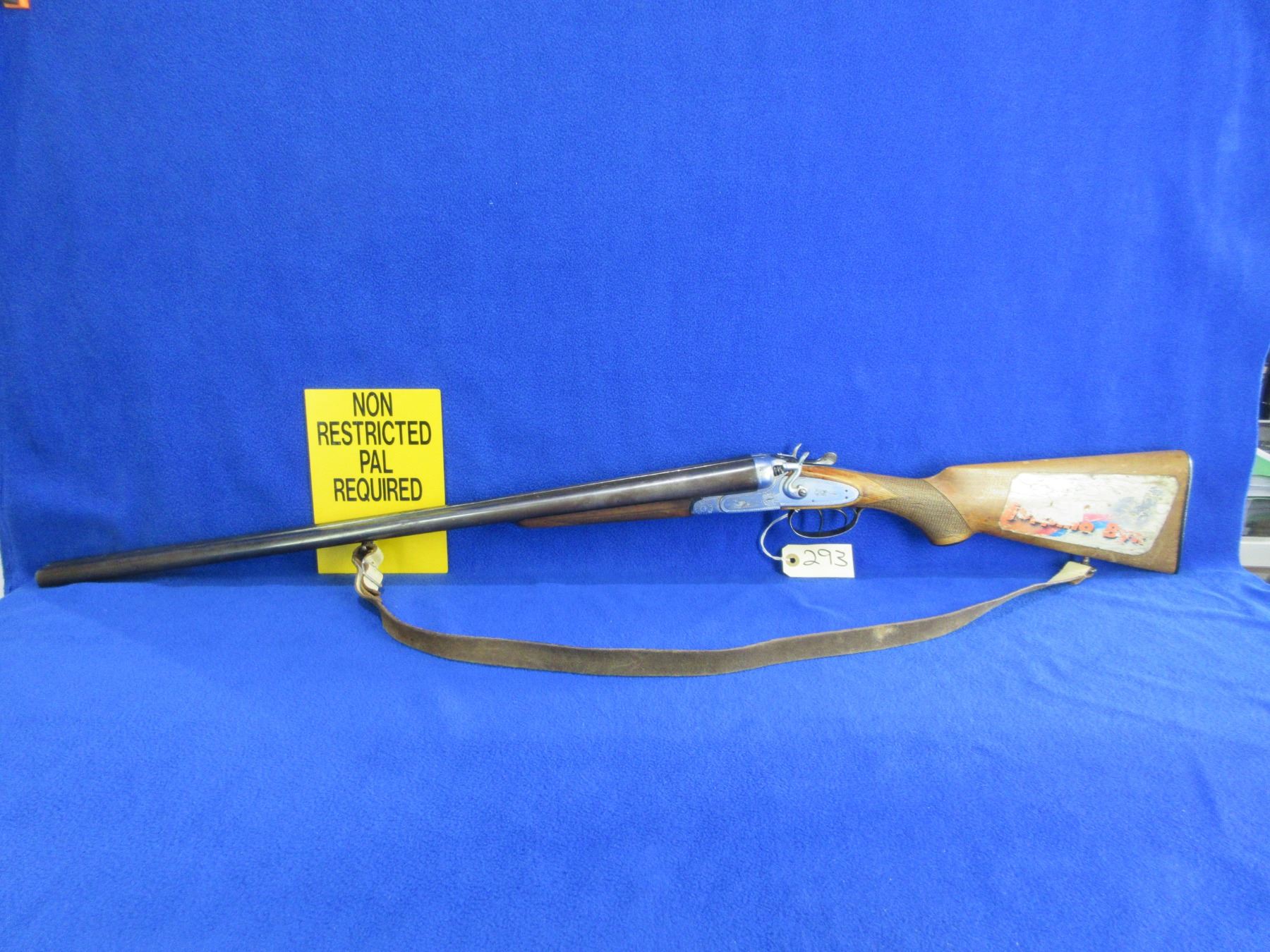 Non-Restricted - Angelo Zoli Acciaio Wickers in 16 Ga. 2 3/4" - This is a tip up SXS hammer shotgun, very nicely engraved action has a small amount of play and appears to be in working order but left firing pin is sticking. Barrels are 27 1/2", bores are good but right barrel is ringed approx. 15" from muzzle, left barrel has a dent approx 14" from muzzle, bluing is turning grey with some rust and pitting, bead front sight missing, stock has a 1" crack on the back left side of the action and a large sticker on left side, forearm is good with usage marks, butt plate good, comes with swivels and sling. Ser # 14362