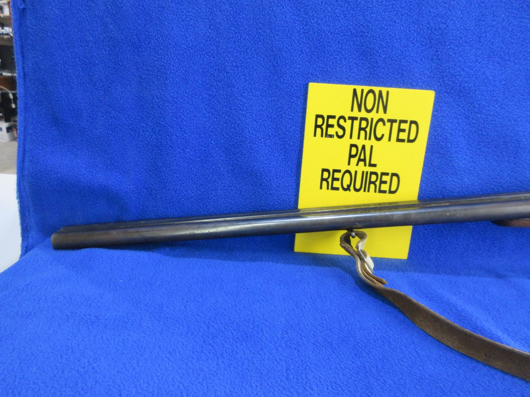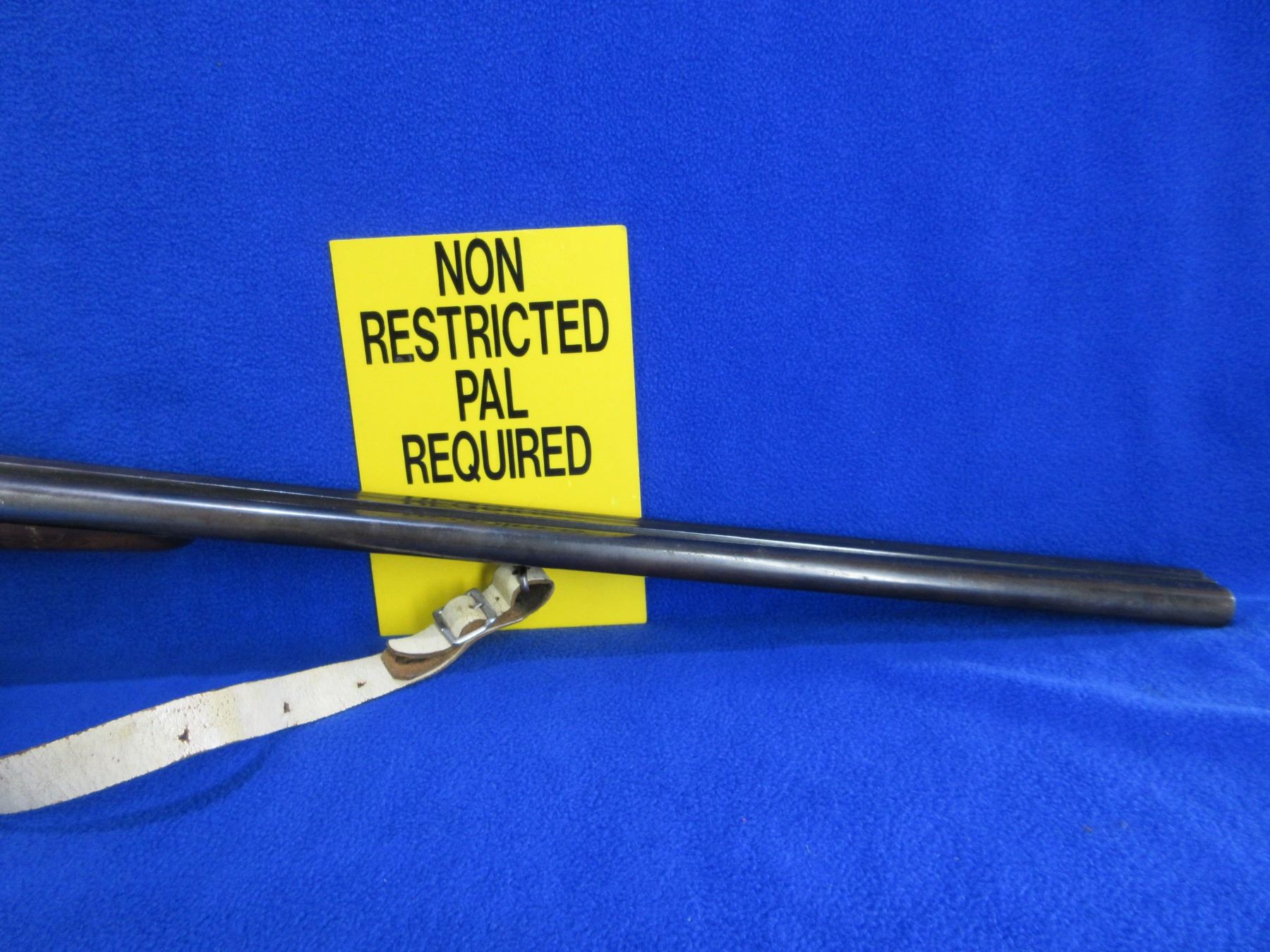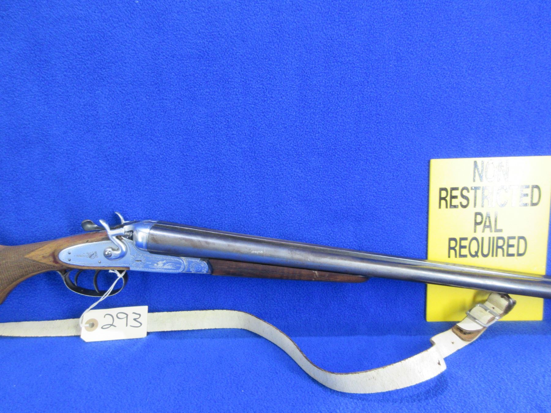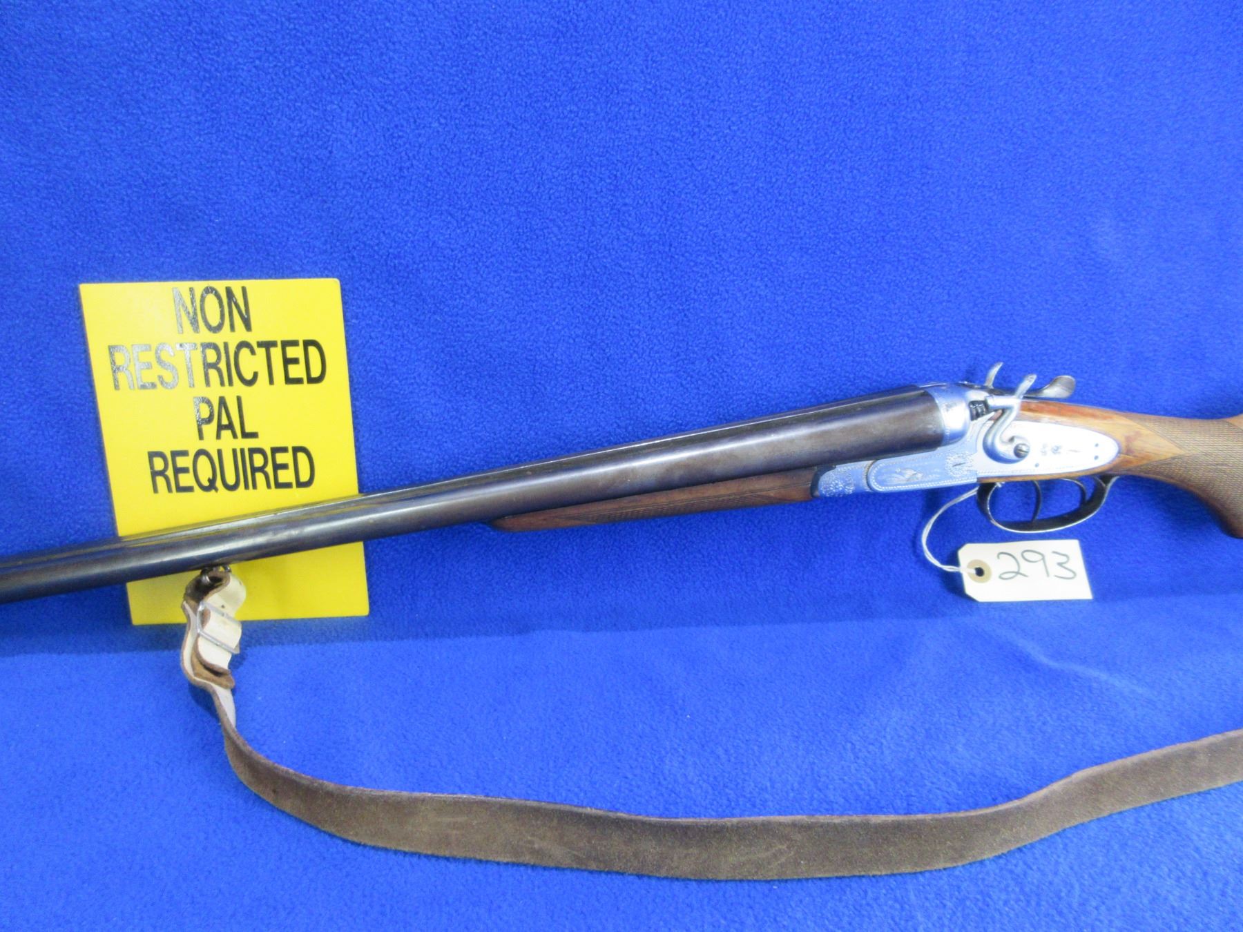 Non-Restricted - Angelo Zoli Acciaio Wickers in 16 Ga. 2 3/4" - This is a tip up SXS hammer shotgun, very nicely engraved action has a small amount of play and appears to be in working order but left firing pin is sticking. Barrels are 27 1/2", bores are good but right barrel is ringed approx. 15" from muzzle, left barrel has a dent approx 14" from muzzle, bluing is turning grey with some rust and pitting, bead front sight missing, stock has a 1" crack on the back left side of the action and a large sticker on left side, forearm is good with usage marks, butt plate good, comes with swivels and sling. Ser # 14362