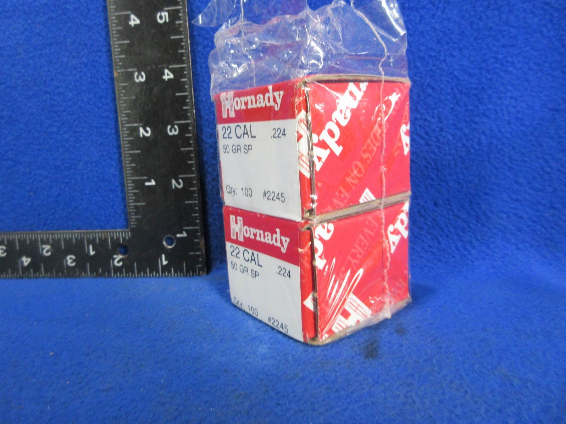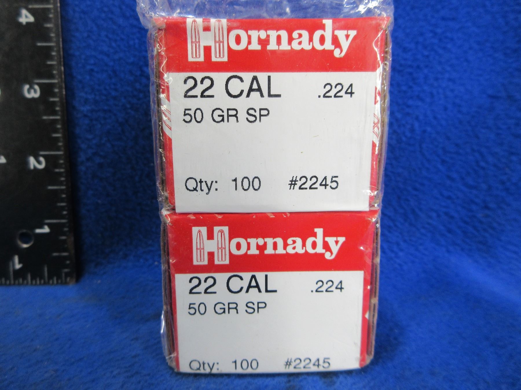 22 Cal. .224" 50gr SP Hornady Bullets - 2 Sealed Boxes of 100