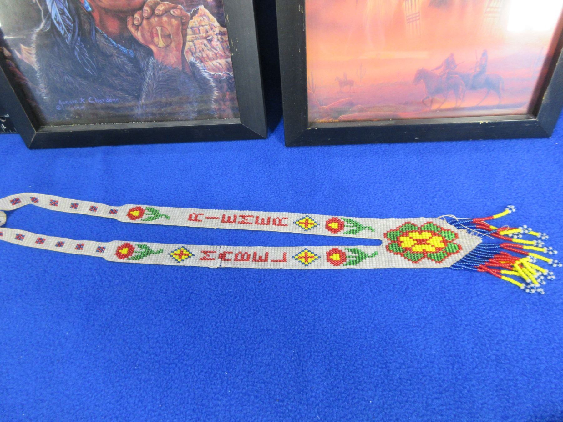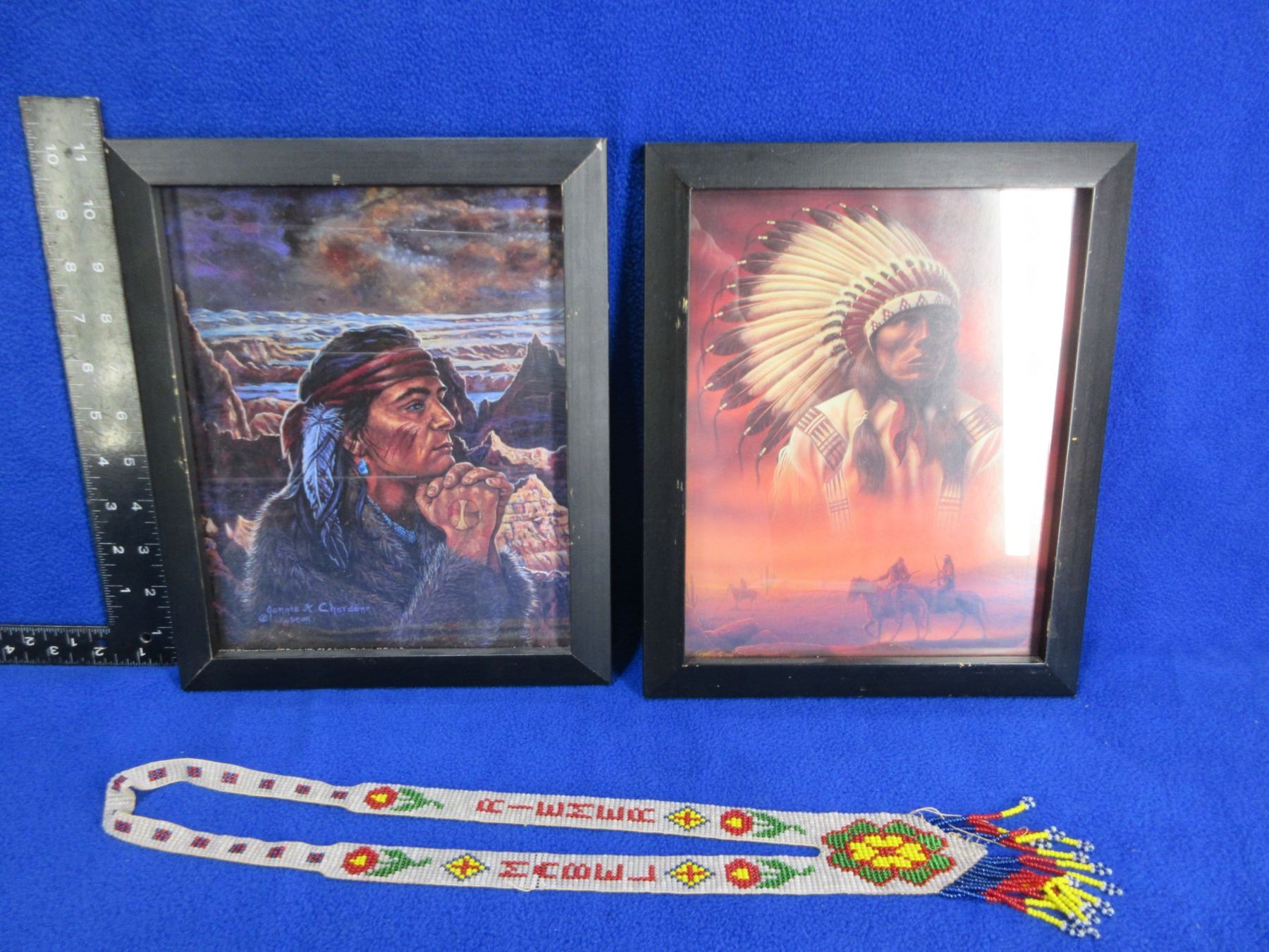 Lot 331 2 Framed Native American Prints and a Beaded Necklace