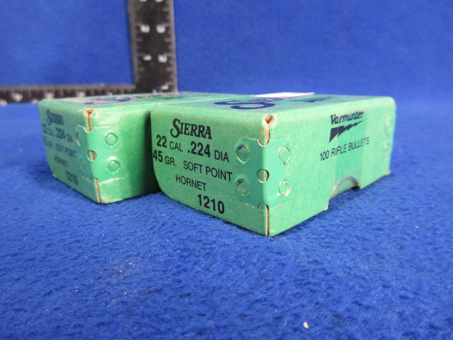 Lot 372 22 Cal. .224" 45gr SP Hornet Sierra Bullets - 2 Sealed Boxes of 100