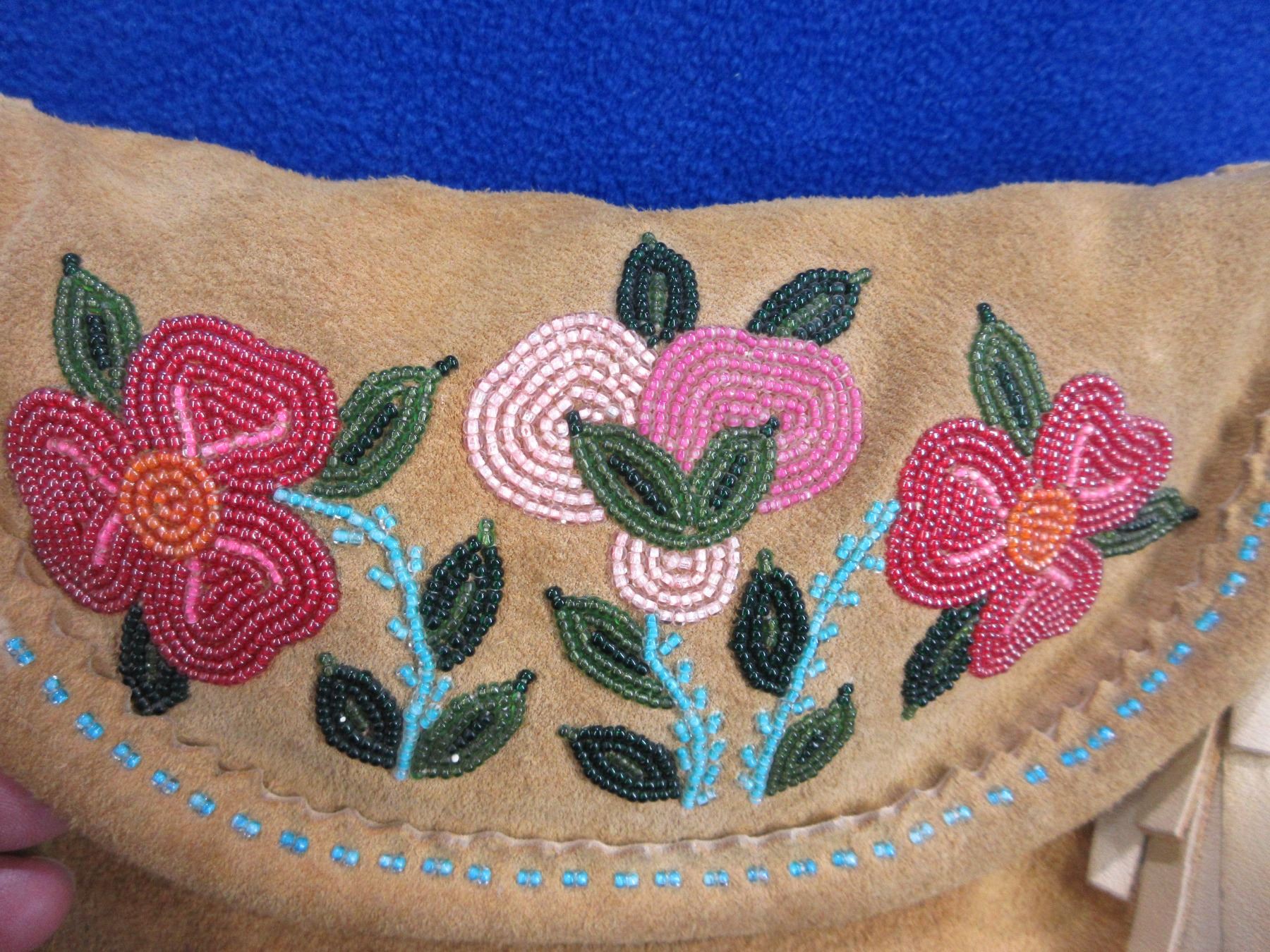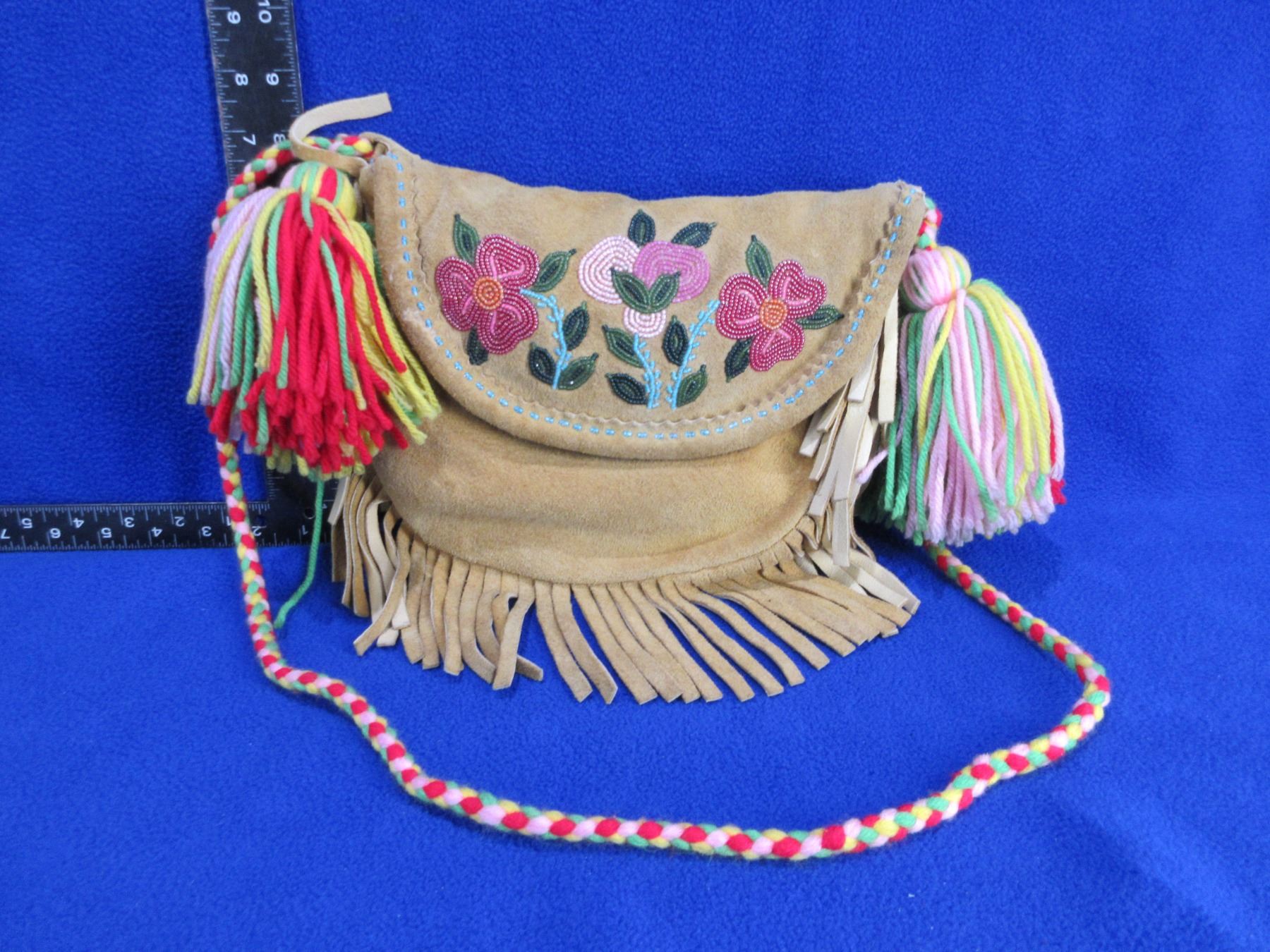 Native American Leather Purse with Beadwork, Fringes & Tassels