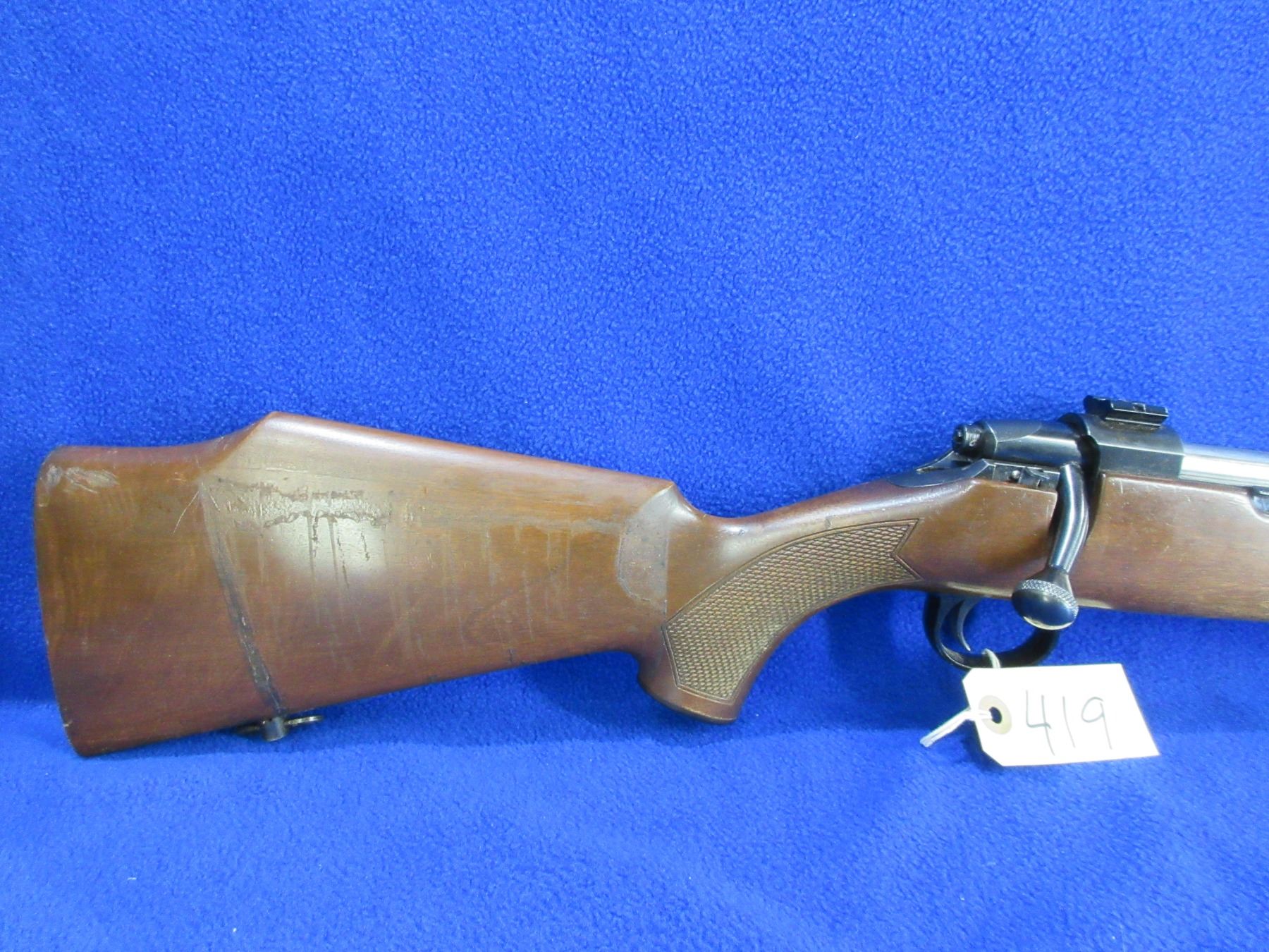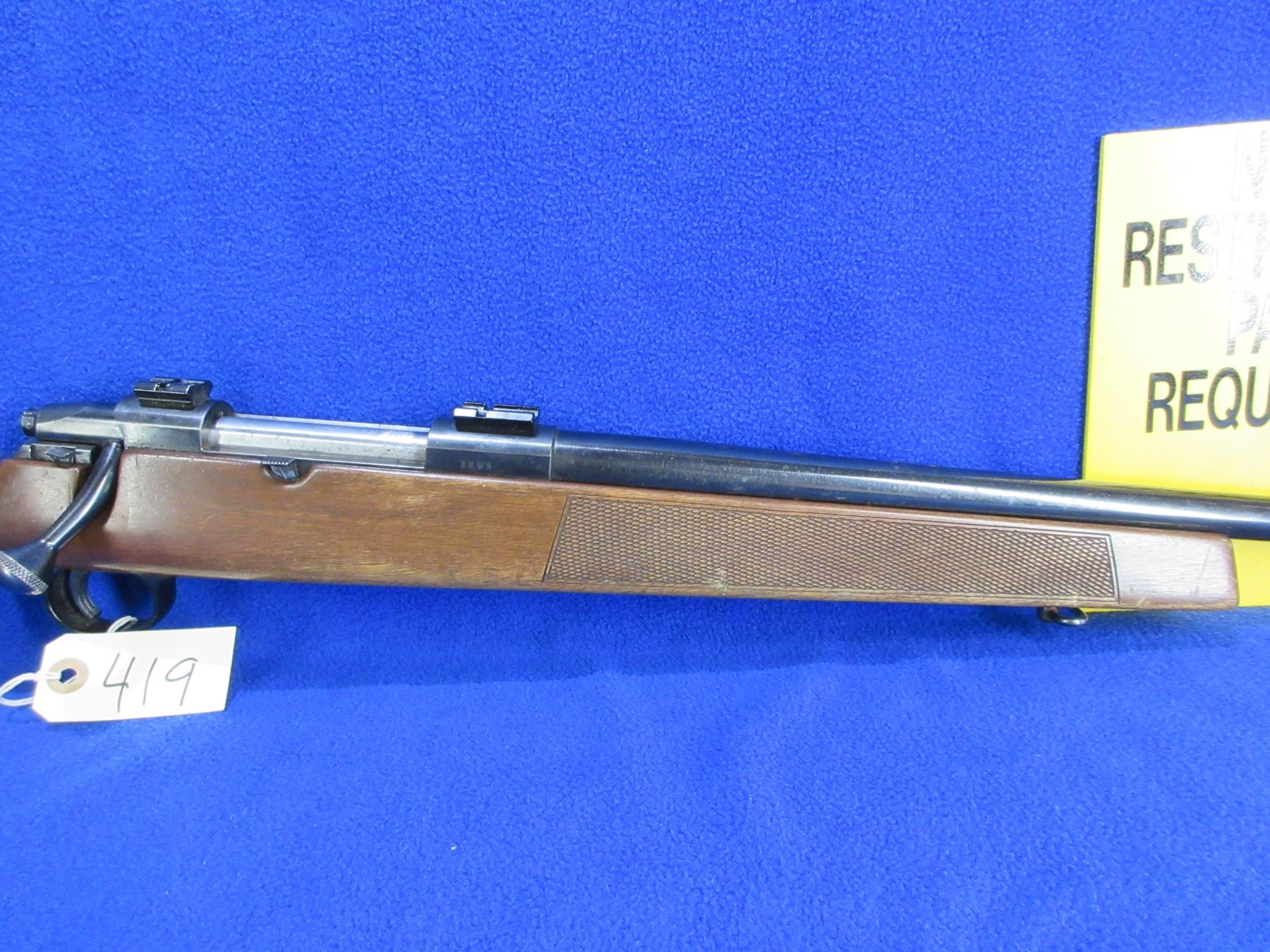 Non-Restricted - Lakelander Model TAP-375 in 6.5x55 - This is a bolt action rifle with internal magazine, action appears to be in good working order. Barrel is 22 1/2", rifling is good to very good, bluing is good but has some speckling, sights are missing but has Weaver style bases, stock is good with usage marks but has what appears to be tape residue on the butt, butt plate missing, comes with swivels. Ser #3885