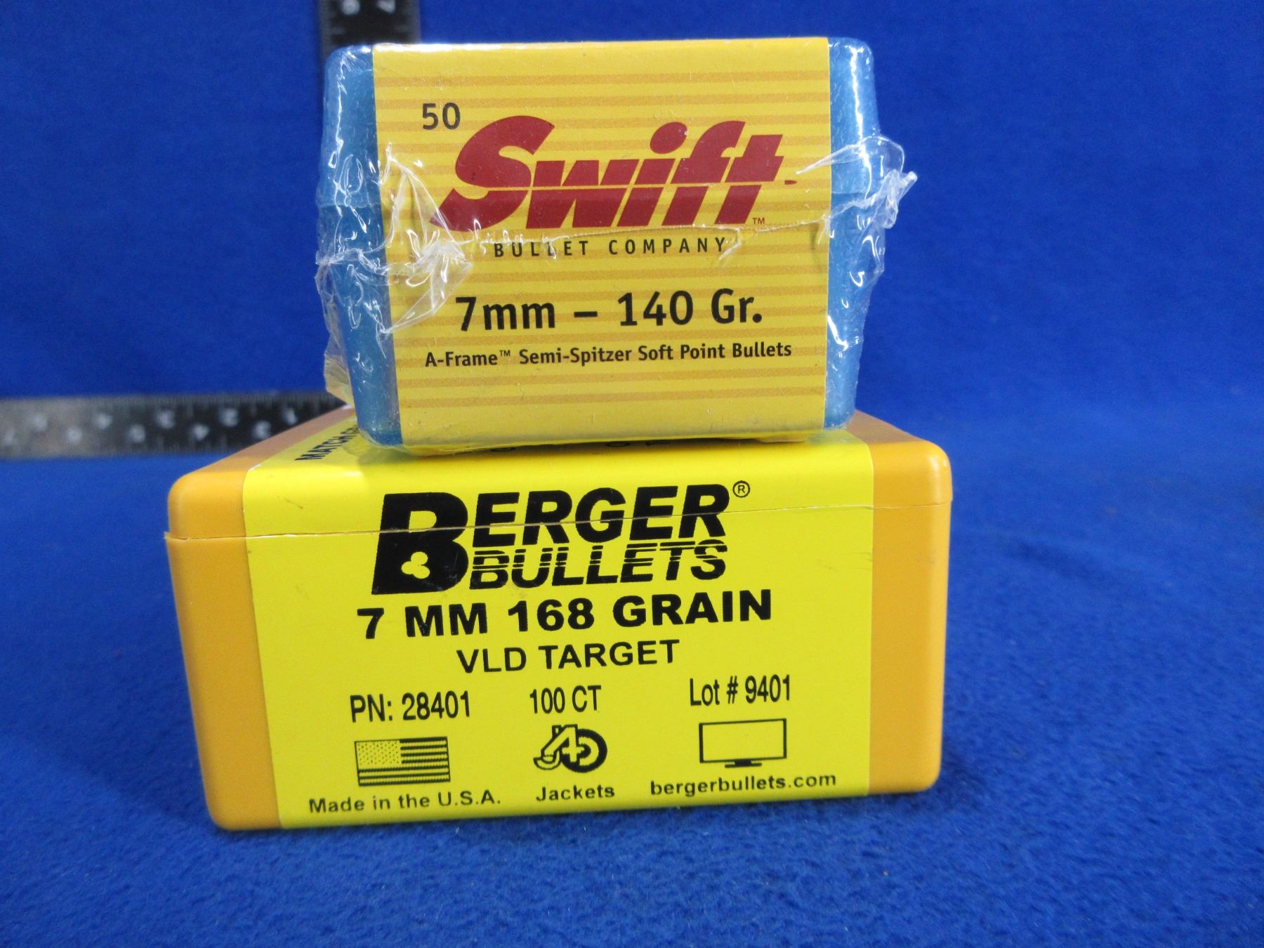 Lot 440 7MM Berger & Swift Bullets - Box of 50 (Swift 140gr), Box of 24 (Berger 168gr)