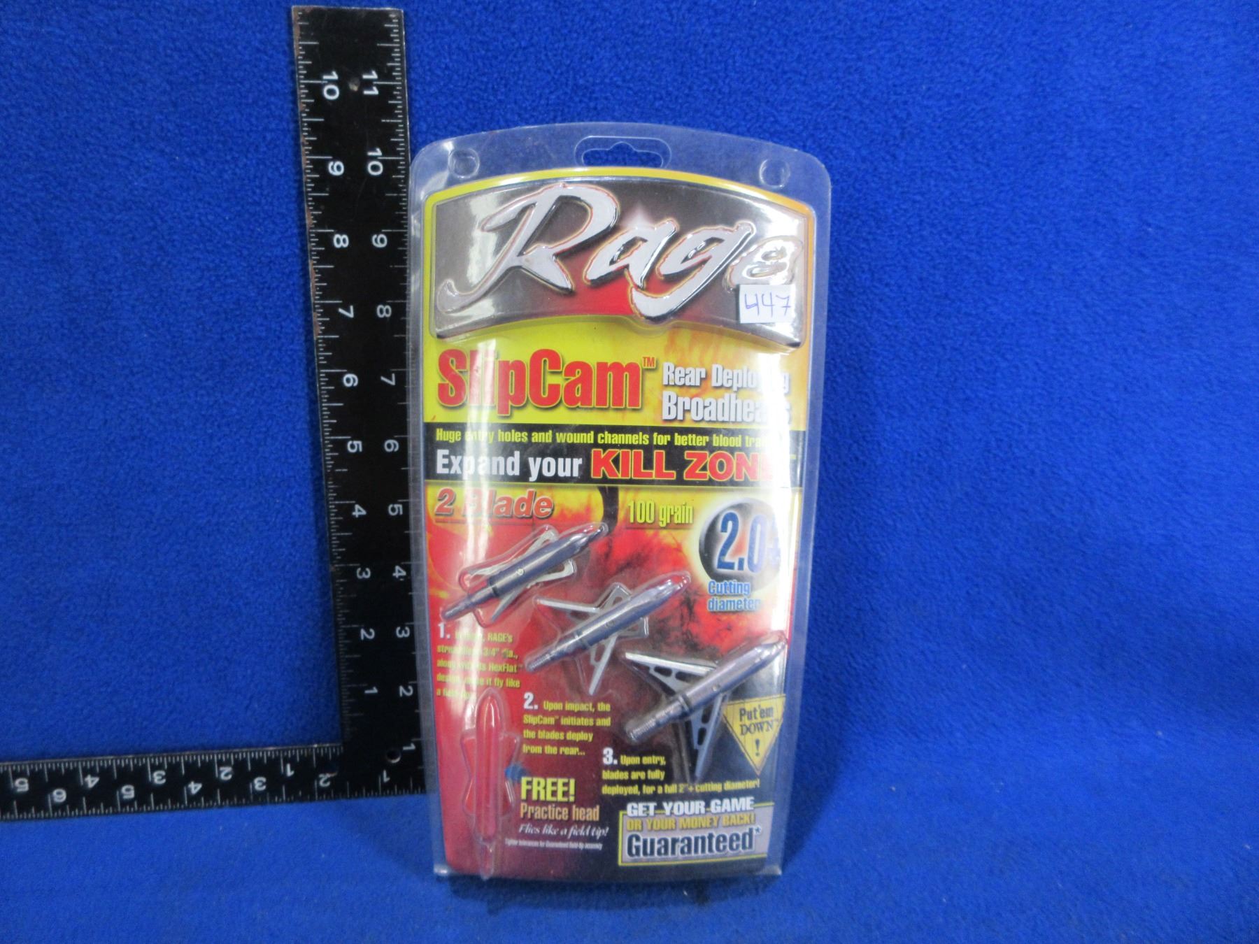 Lot 447 Rage SlipCam Rear Deploying Broadheads - 2 Blade, 100 Grain - Pack of 3