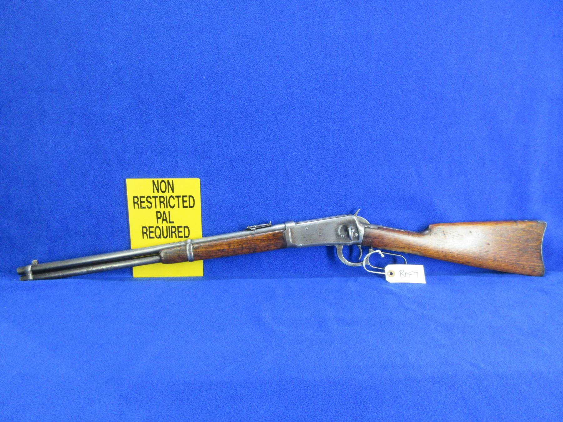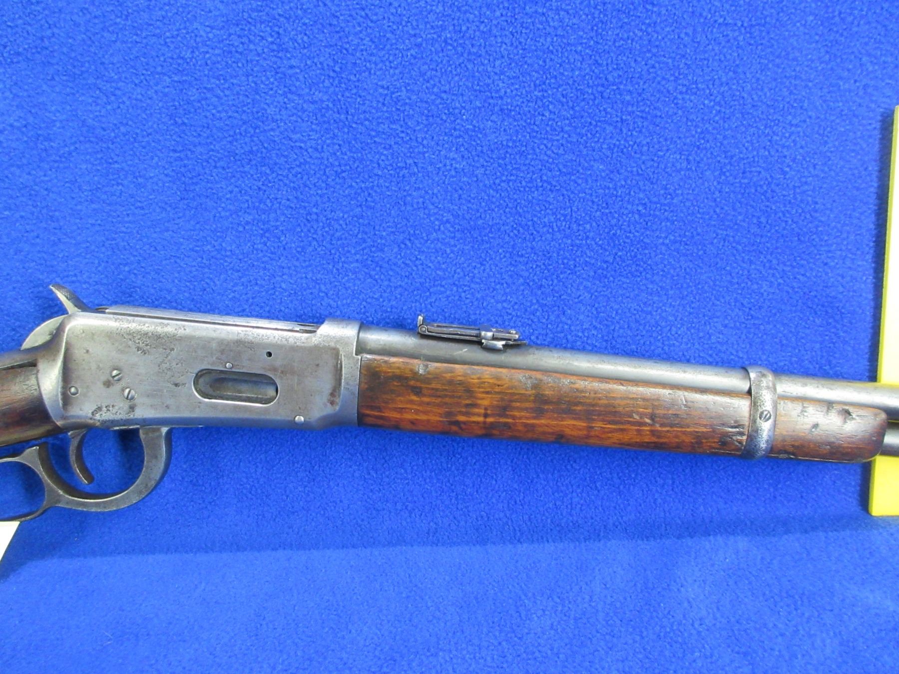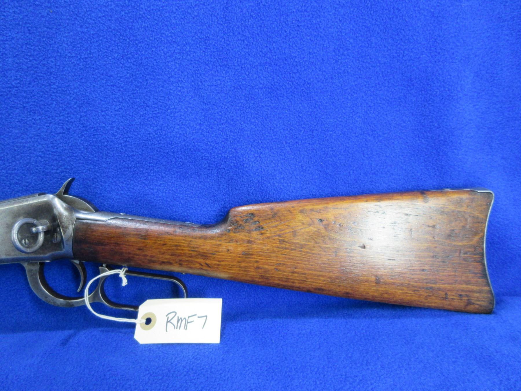 Non-Restricted - Winchester Model 1894 Saddle Ring Carbine in 30 WCF - Made in 1907, this is a lever action rifle with tube magazine, action appears to be in good working order. Barrel is 20", rifling is fair to good (needs wet cleaning), bluing is gone and has pitting, has both sights, stock is good for age with many usage marks, forearm is cracked on bottom front, metal butt plate good. Ser #415522