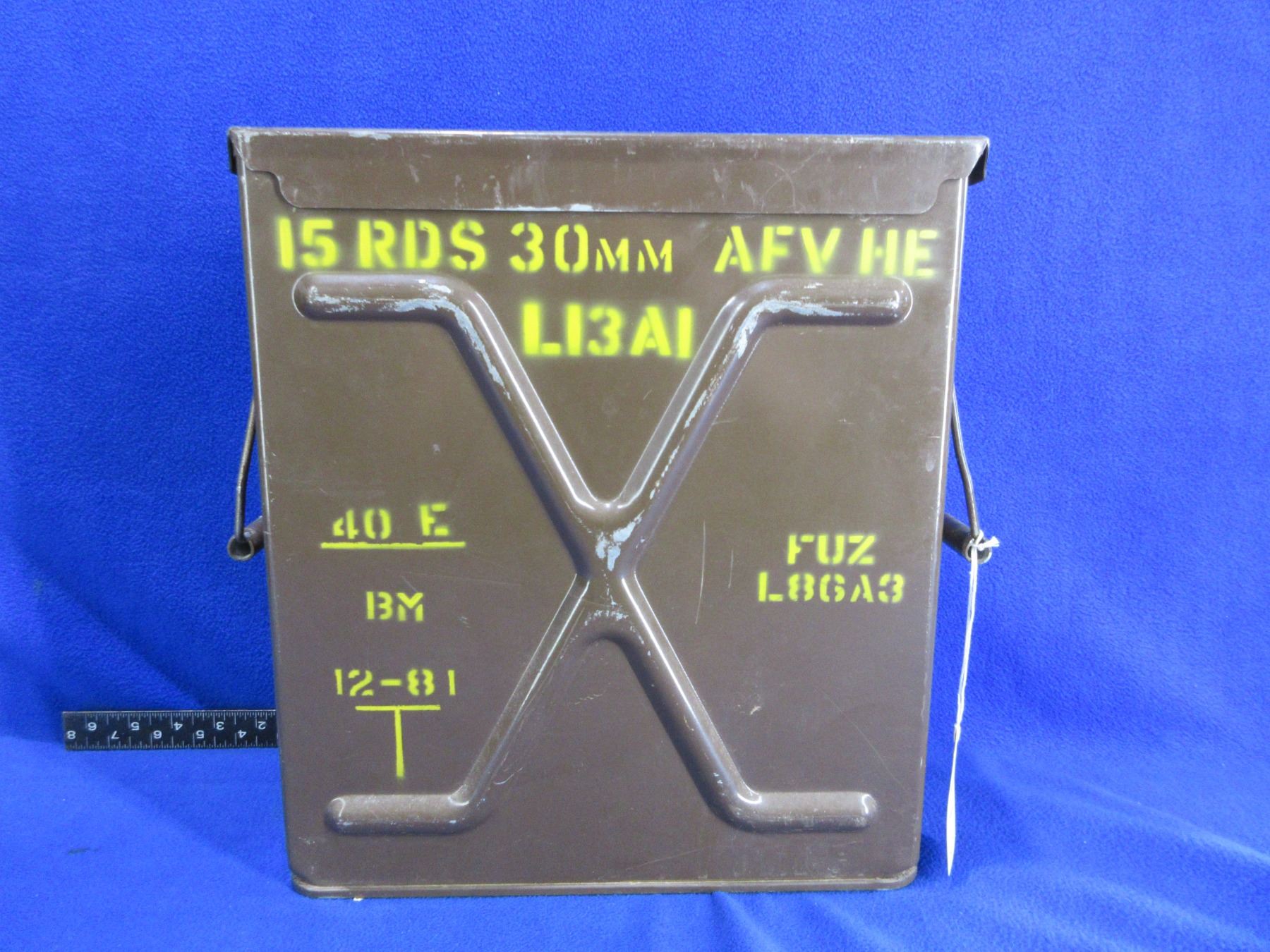 Metal Ammo Can - 12" x 5 1/2" x 13 1/2" High - 15 RDS 30MM AFV - Same width and length as the 50 caliber cans and will stack nicely with the 50 caliber cans.