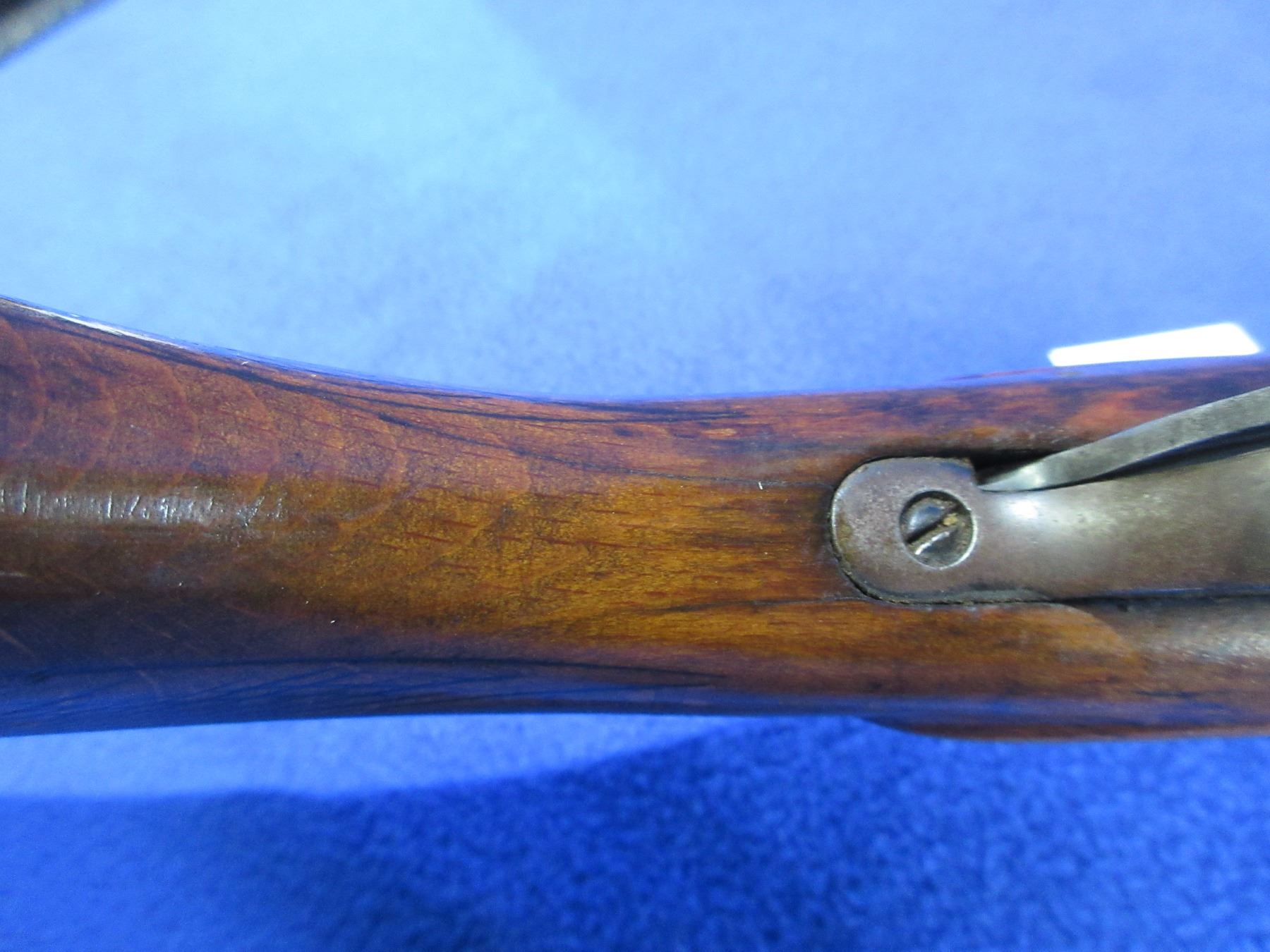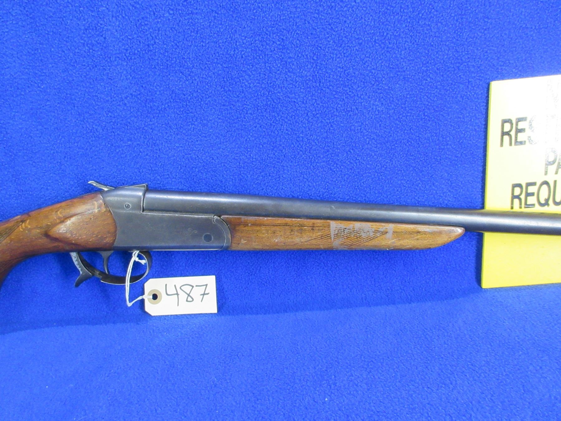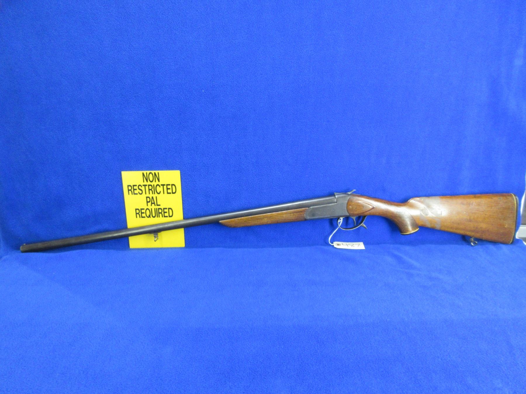 Non-Restricted - Baikal Model IJ-17 in 16 Ga. 2 3/4" - Made in USSR, marked 1964 - This is a tip up single shot shotgun, action is tight and appears to be in good working order but should not be fired as stock is cracked. Barrel is 29", bore is fair to good (may need wet cleaning), bluing is good with some light pitting and wear spots, has bead front sight, stock has cracks behind the upper and lower tangs, forearm is good with many usage marks, butt plate good, comes with swivels. Ser # H79793