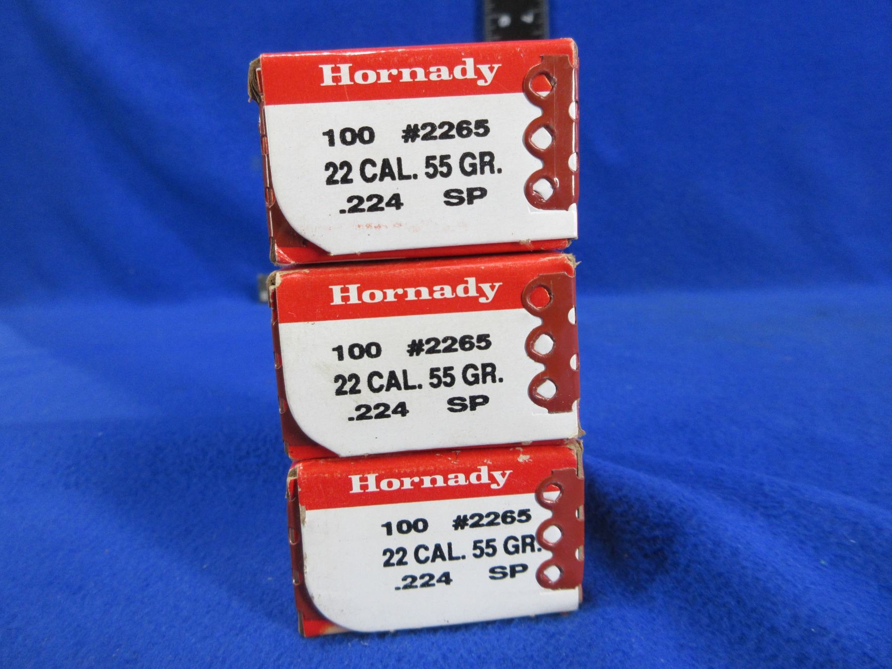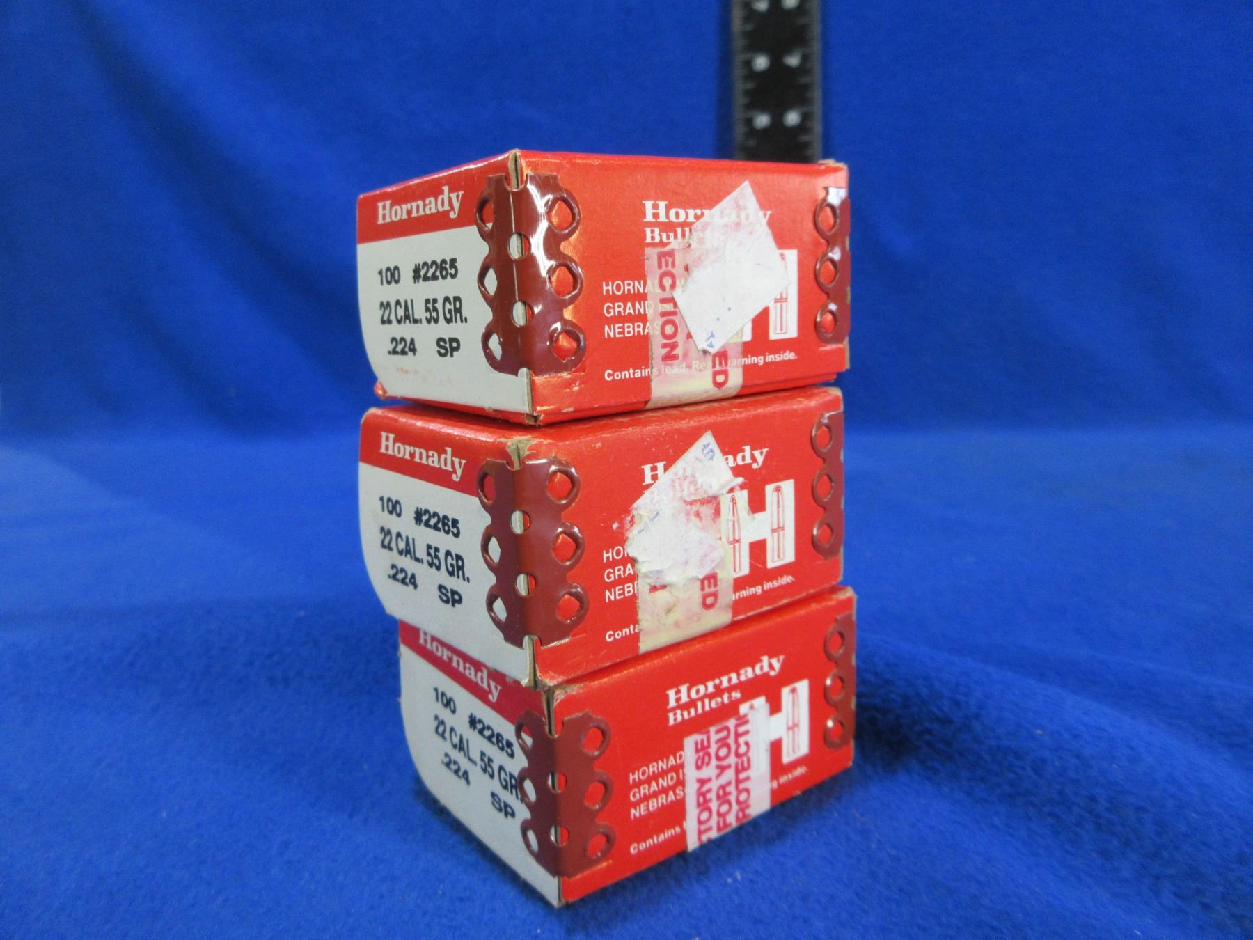 22 Cal. .224" 55gr SP Hornady Bullets - 3 Sealed Boxes of 100