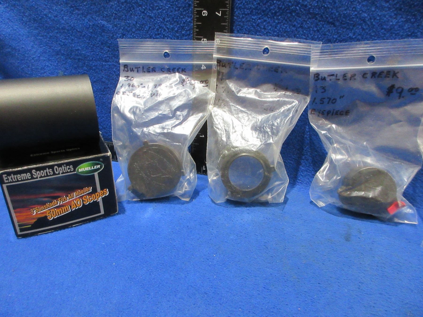 Lot 498 6 Flip-Up Lens Covers and Mueller 3" Sunshade (50MM AO Scopes)