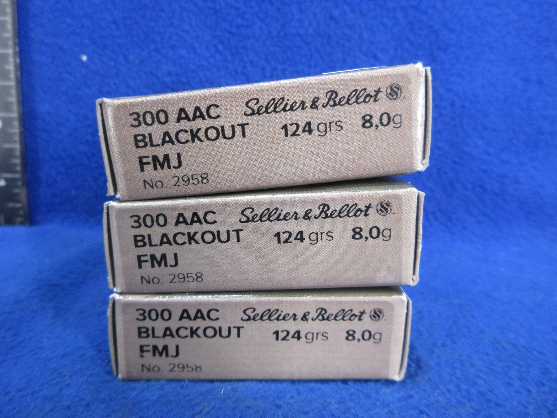 300 AAC Blackout 124gr FMJ (Pick Up or Ship by UPS Only) Sellier & Bellot Cartridges - 3 Boxes of 20