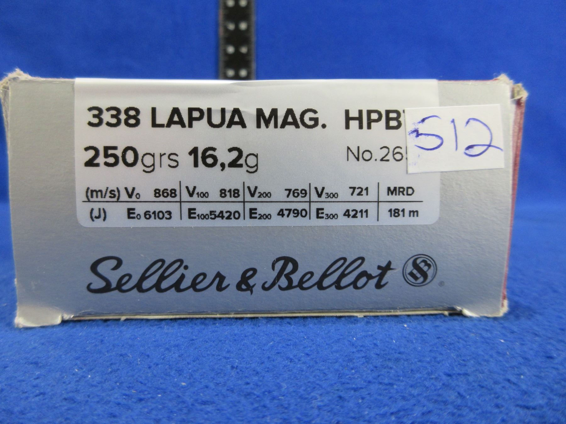338 Lapua Mag 250gr HPBT (Pick Up or Ship by UPS Only) Sellier & Bellot Cartridges - Box of 10