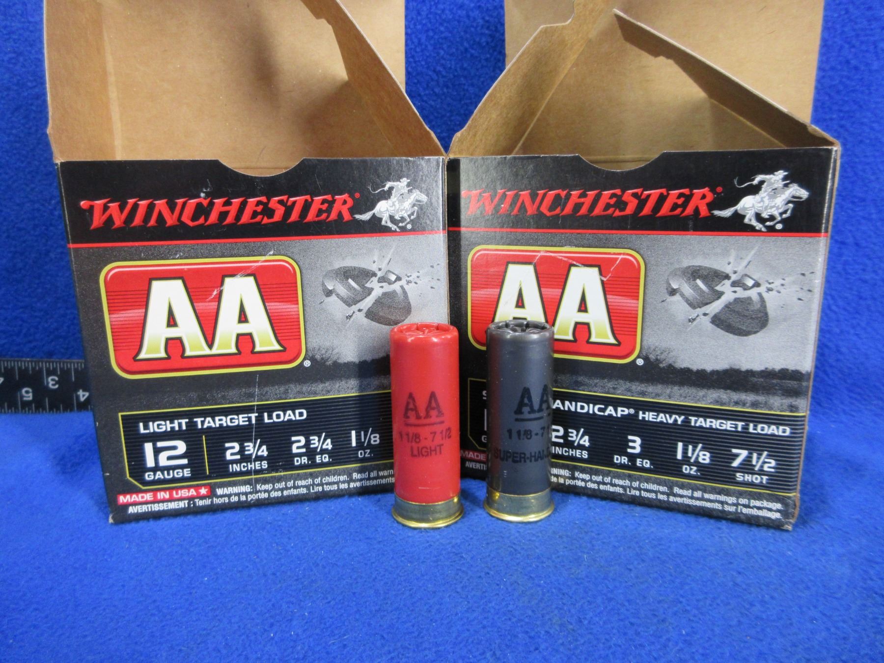 12 Ga. 2 3/4" 7 1/2 Shot (Pick Up or Ship by UPS Only) Winchester Shotshells - 2 Boxes of 25 (1 box is Super-Handicap, other is Light Target Load)