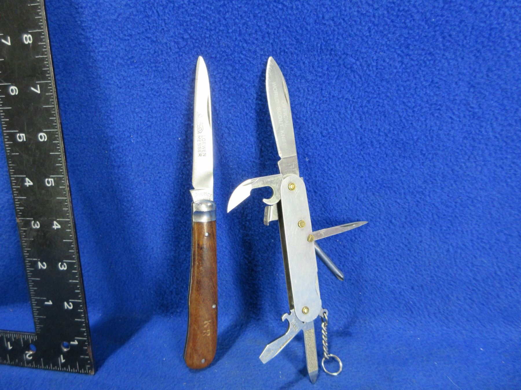 Lot 532 2 Folding Blade Pocket Knives - Loewen Messer, Official World Scout Knife
