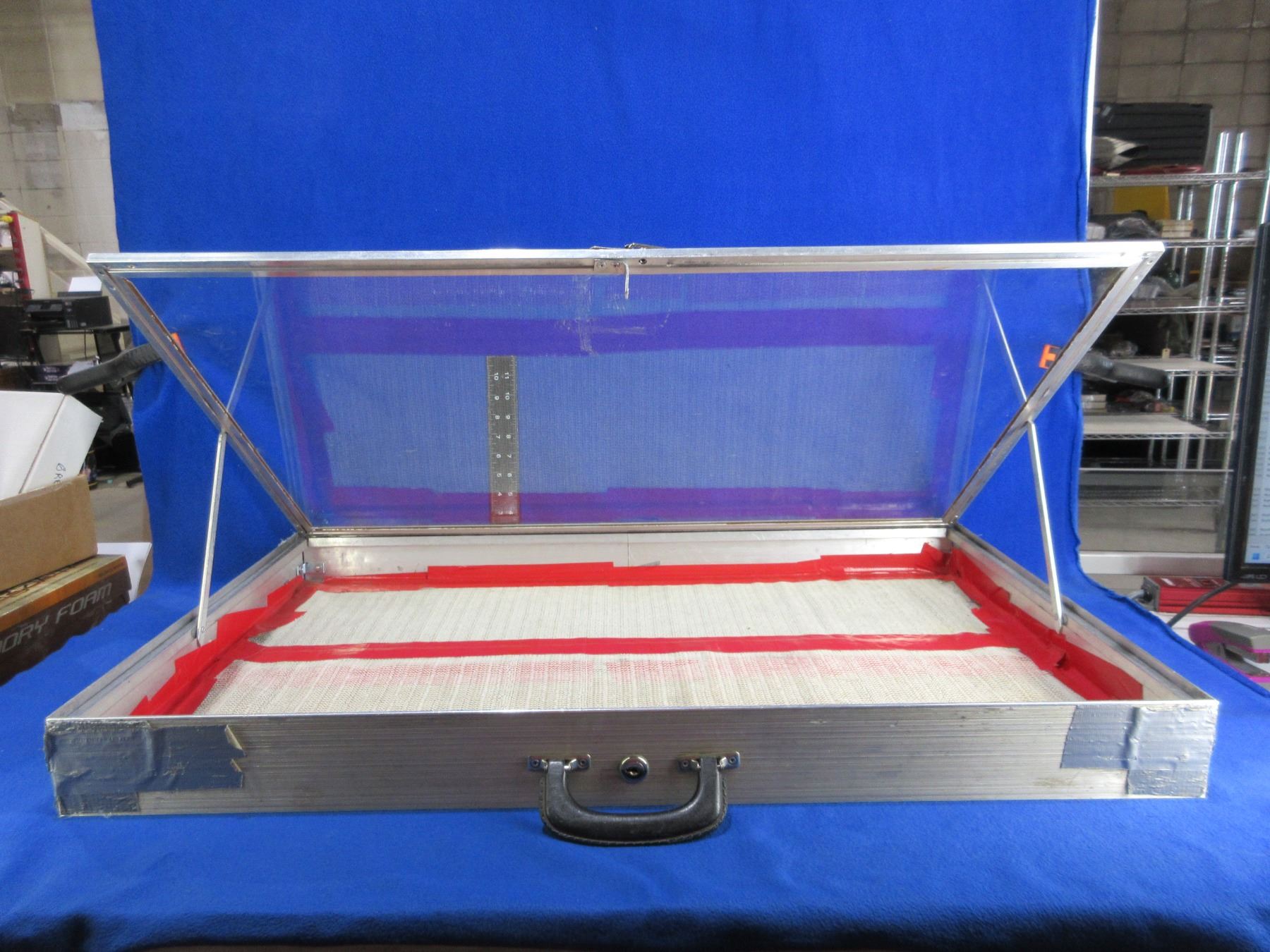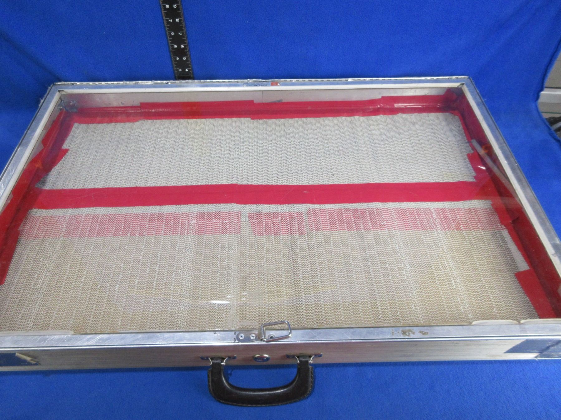 Aluminum Display Case with Glass - 34" x 22" x 3 1/8" - PICK UP ONLY - Corners are Taped - No Key, Allstate Mfg. Co.