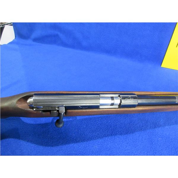 Non-Restricted - Anschutz Model 1420 in 22 LR - This bolt action rifle with removable magazine appears to be in good to very good working order. Barrel is 21 3/4", thread cover missing, rifling is very good, bluing is good, sights are missing but has integral scope mount, stock is good to very good but appears refinished, butt plate incorrectly sized, comes with swivel studs. Ser #599824