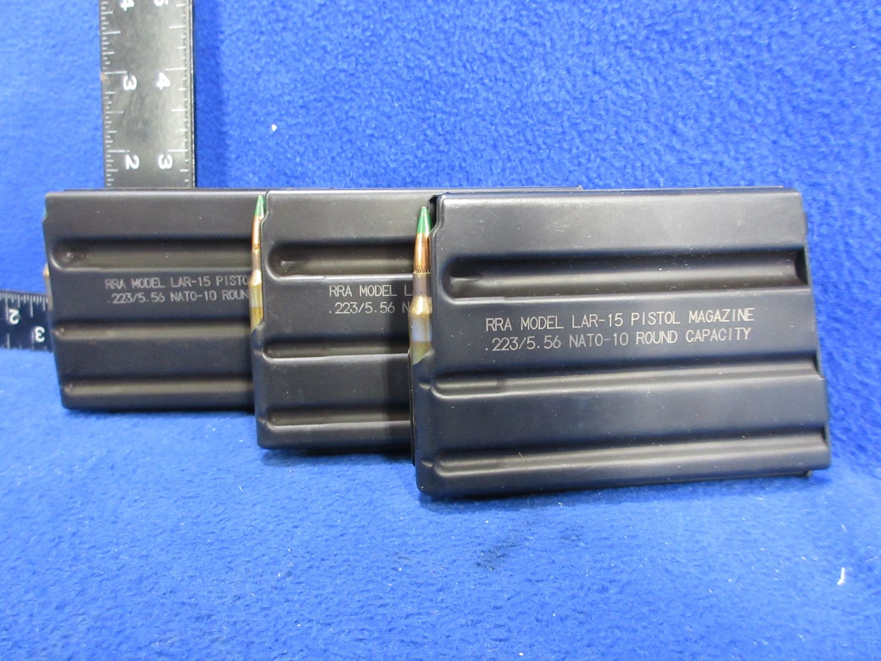 5.56 Nato Cartridges in Magazines (Pick Up or Ship by UPS Only) - 3 RRA Model LAR-15 Pistol 10 Rnd Magazines Full - 30 Rounds Total