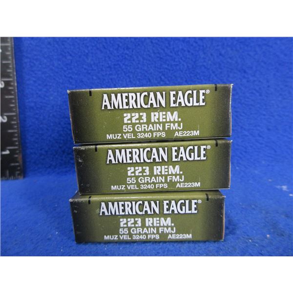 223 Rem. 55gr FMJ Federal American Eagle Cartridges (Pick Up or Ship by UPS Only) - 3 Sealed Boxes of 20